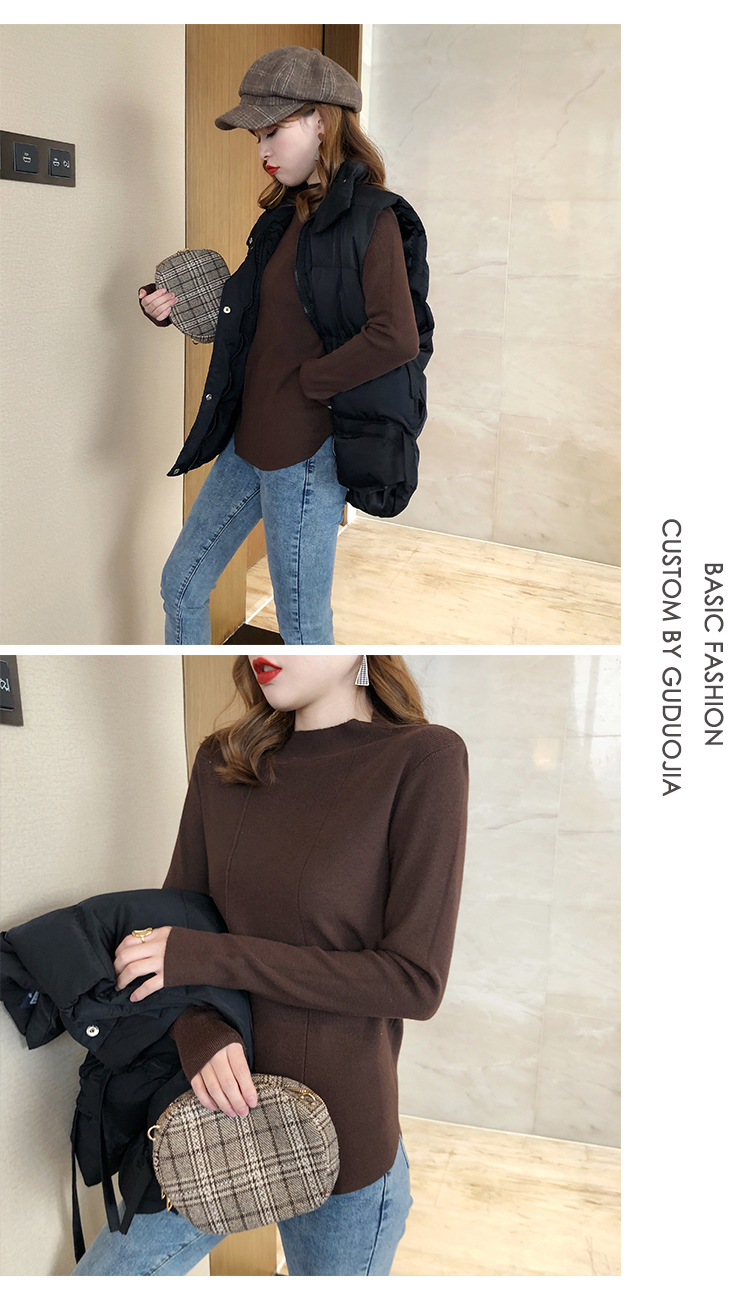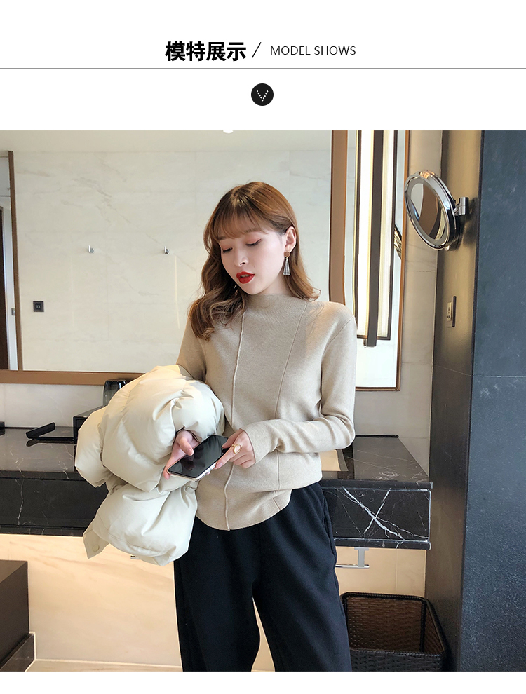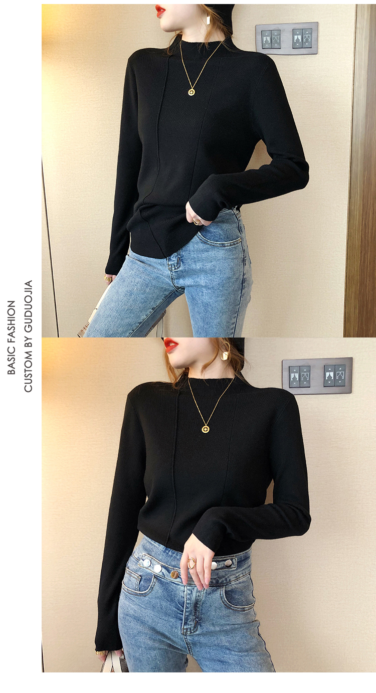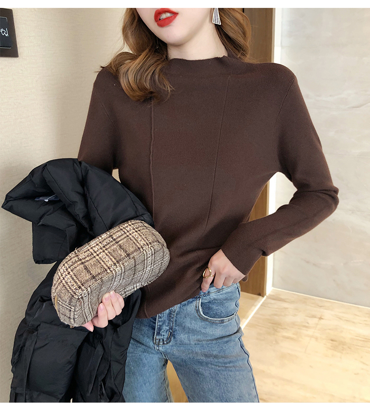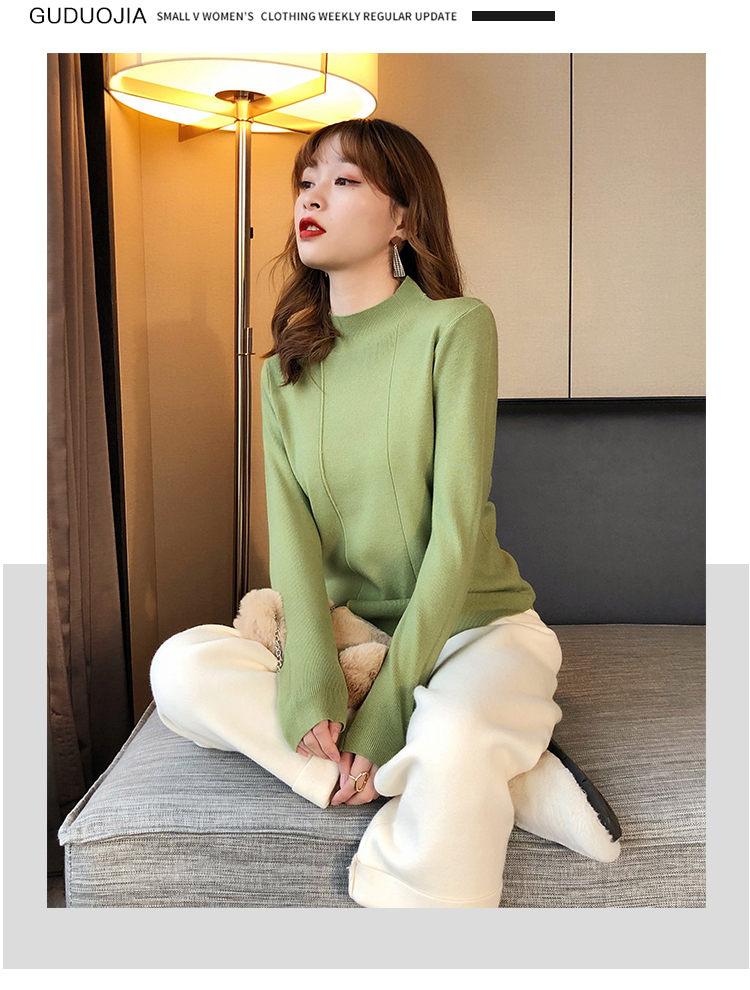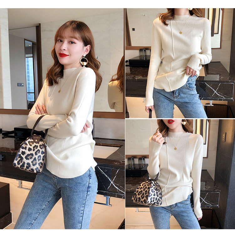 2019秋冬新款半高領內搭針織衫韓版時尚打底衫女加厚外穿女士毛衣1入