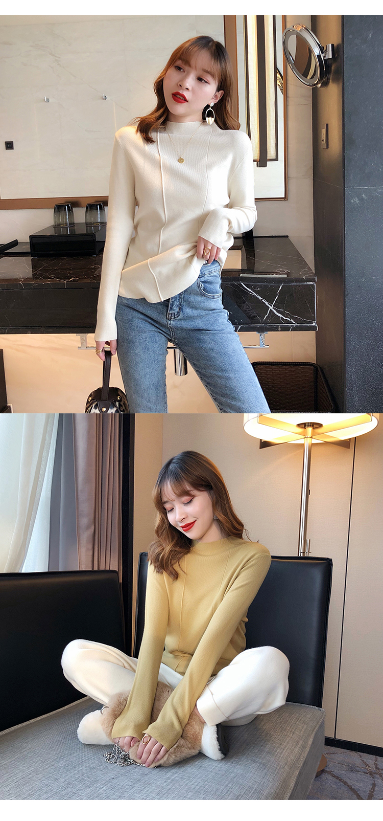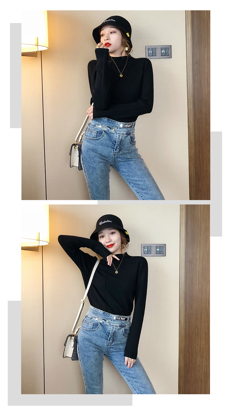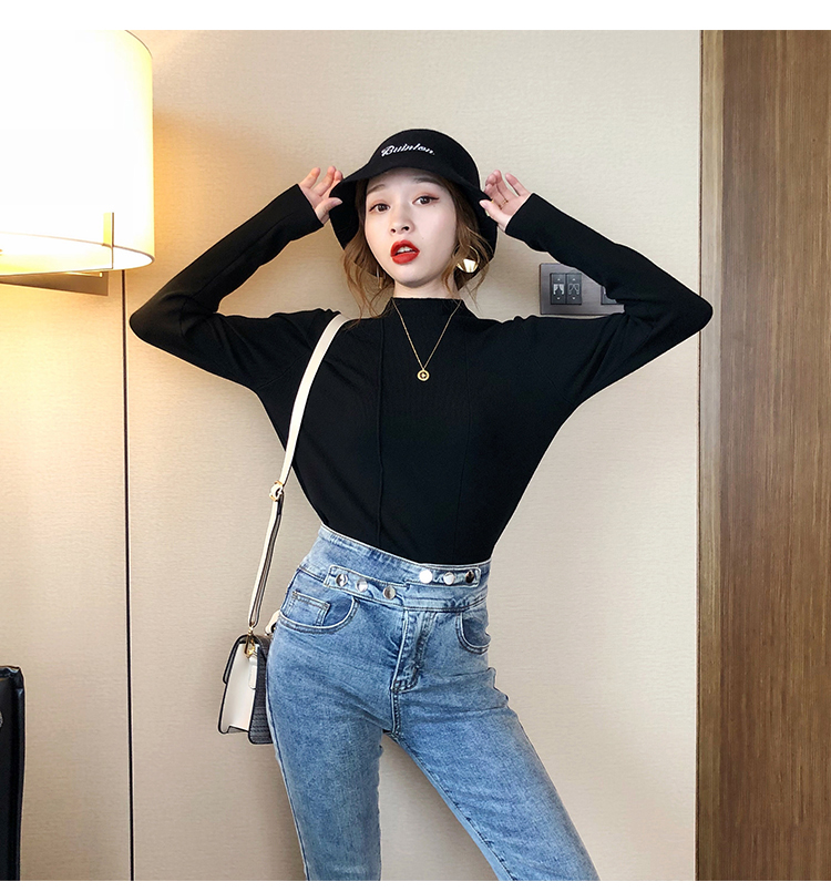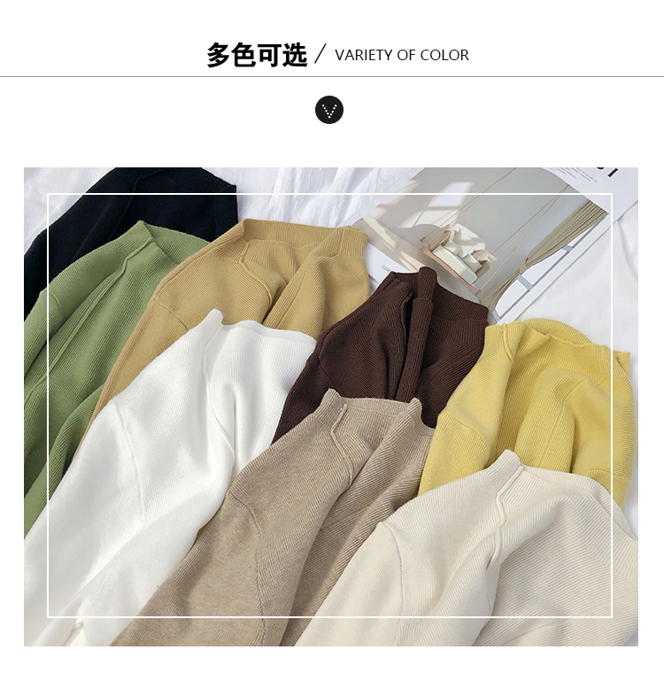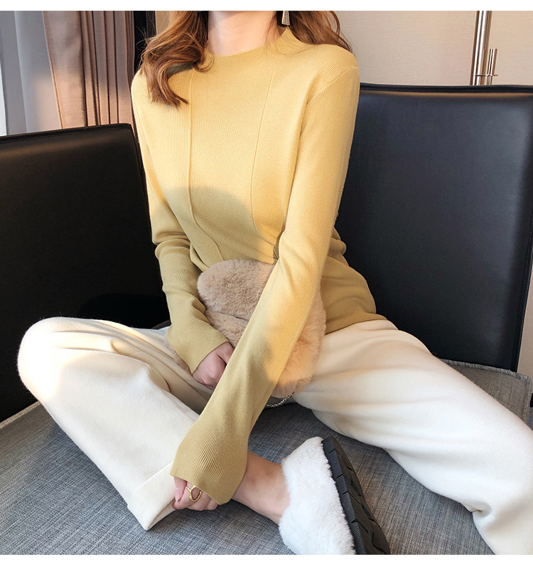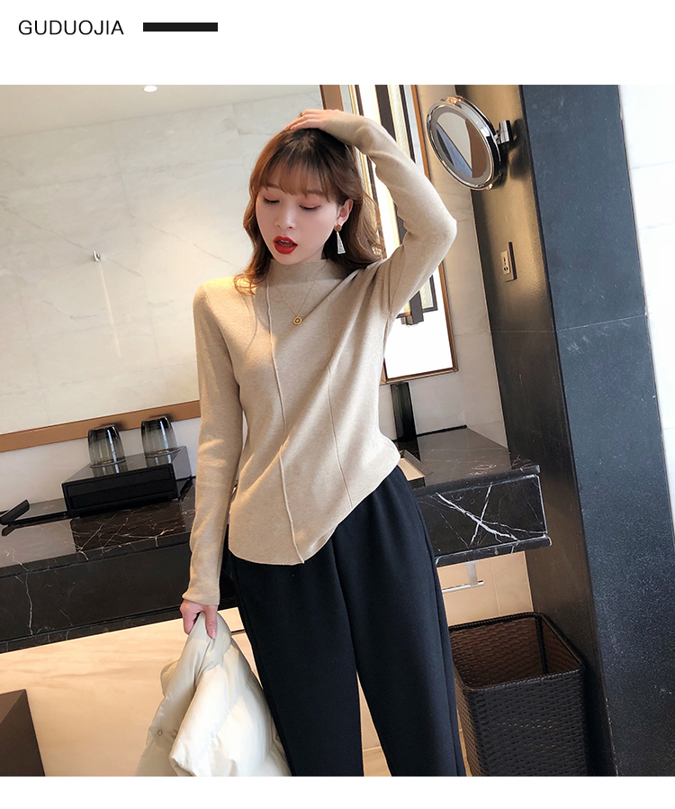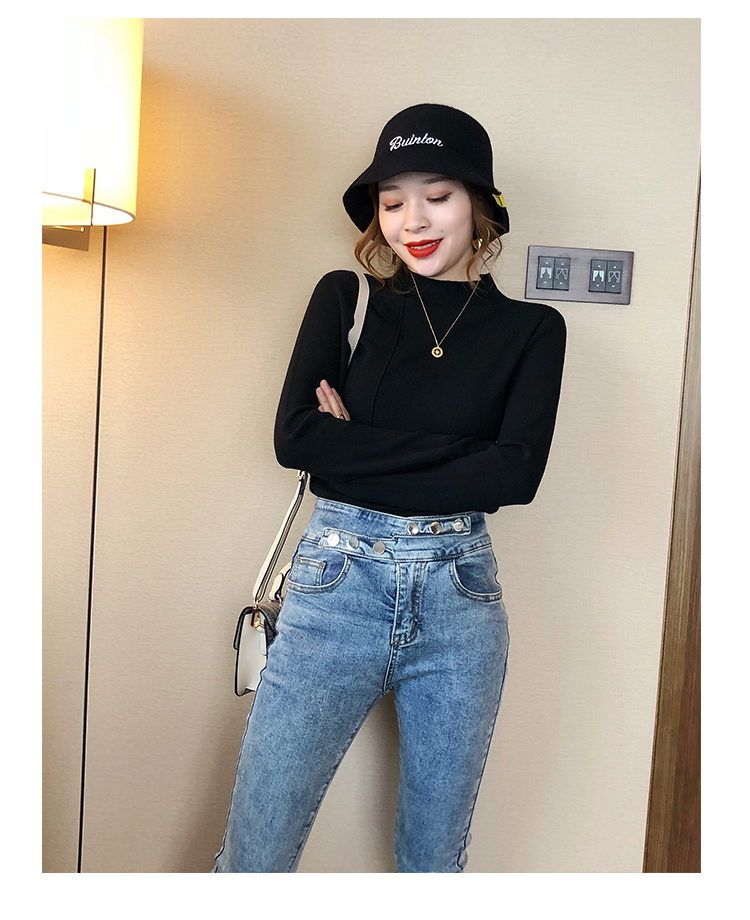 2019秋冬新款半高領內搭針織衫韓版時尚打底衫女加厚外穿女士毛衣1入