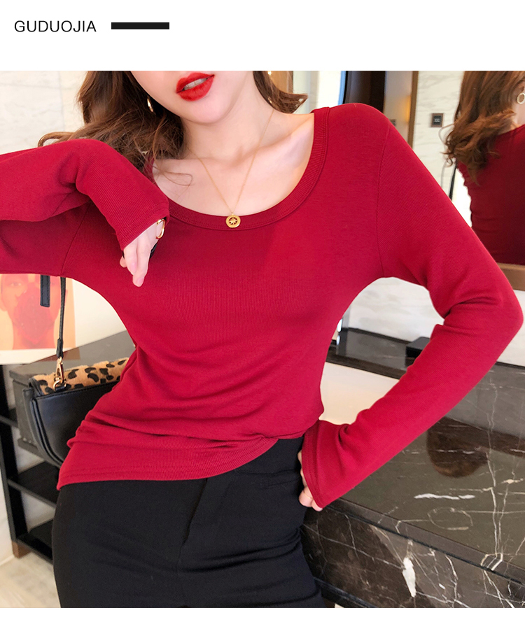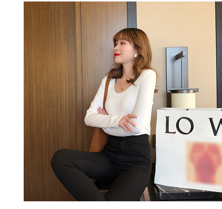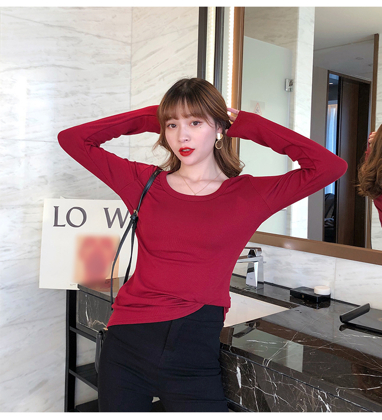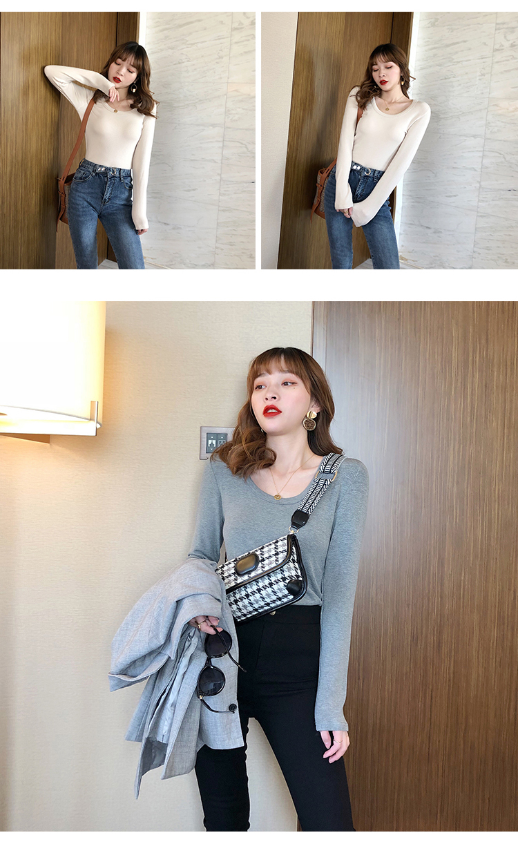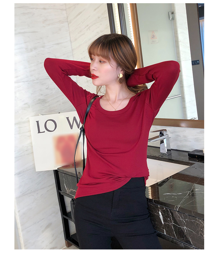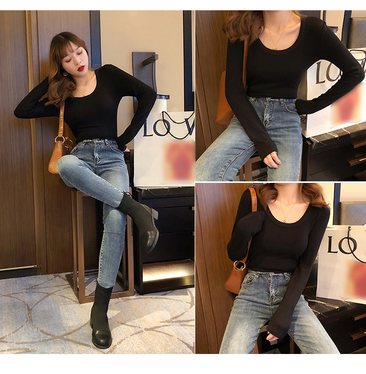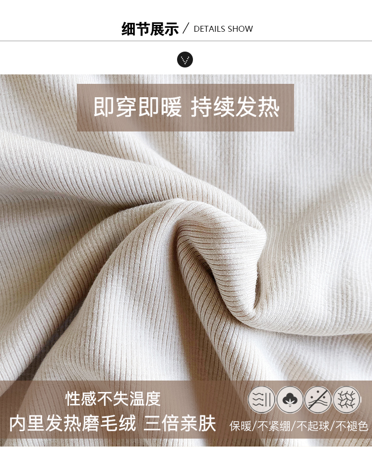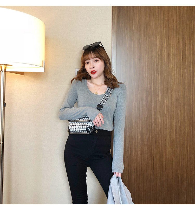2019秋冬新款加絨打底衫女長袖圓領簡約加厚t恤修身百搭短款上衣1入