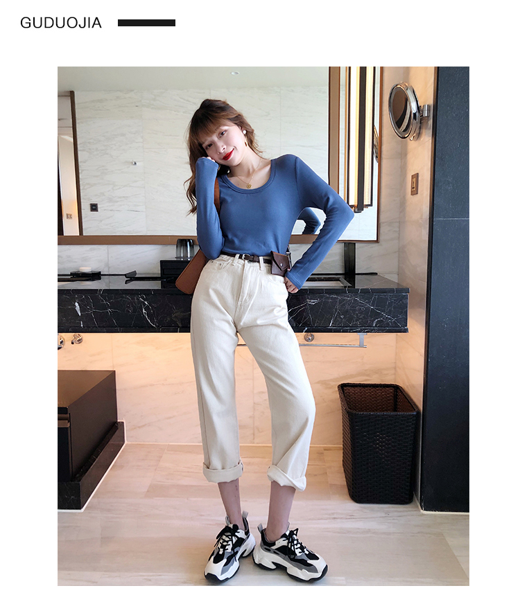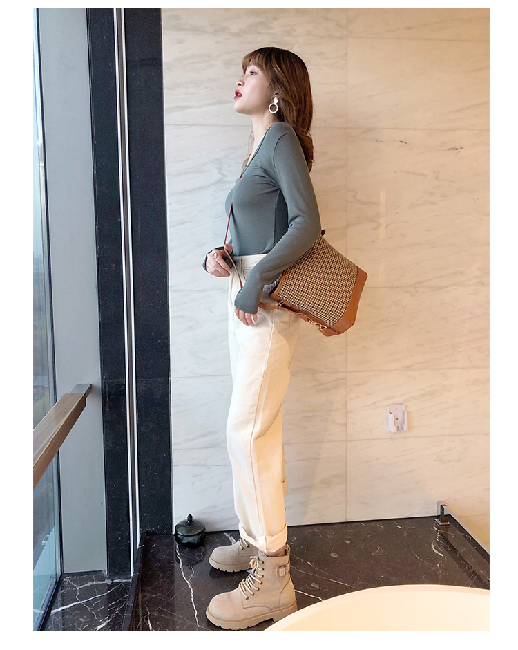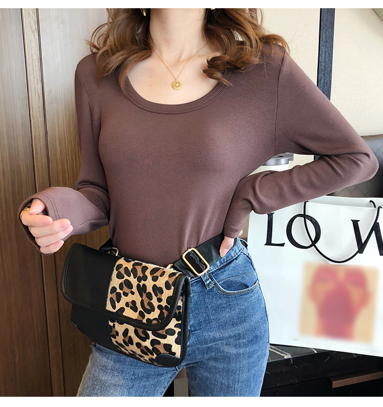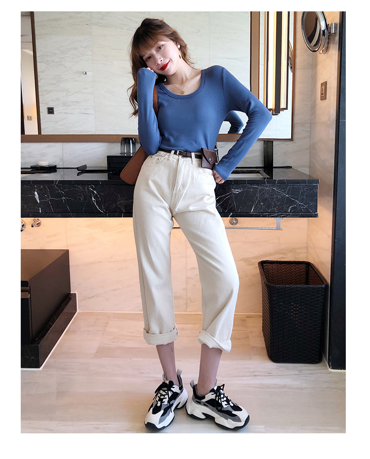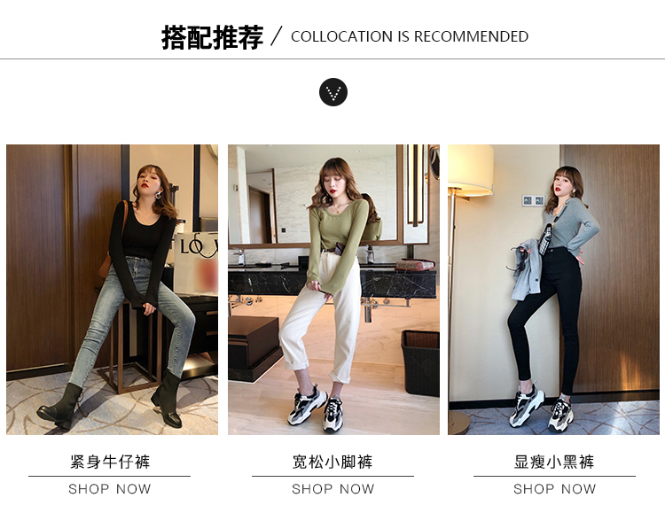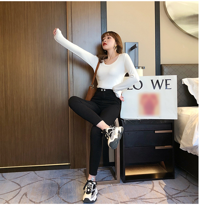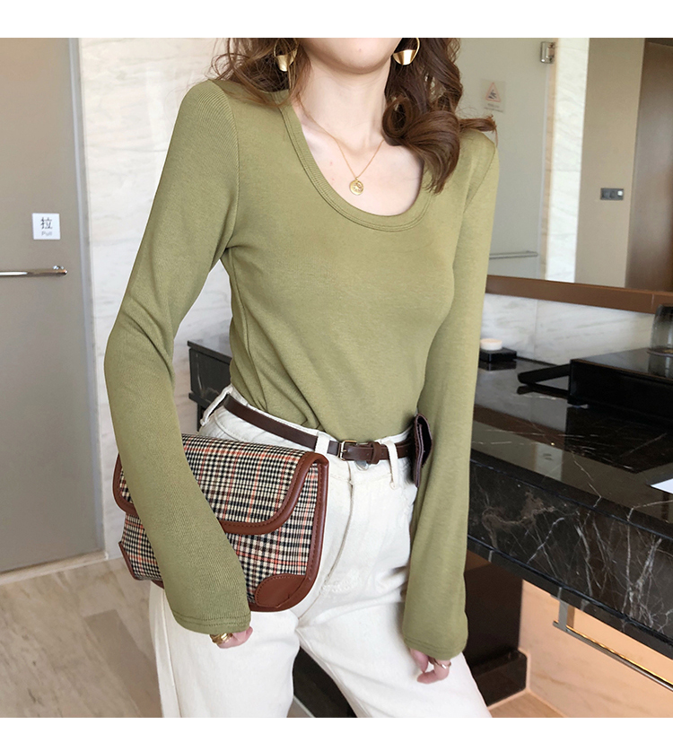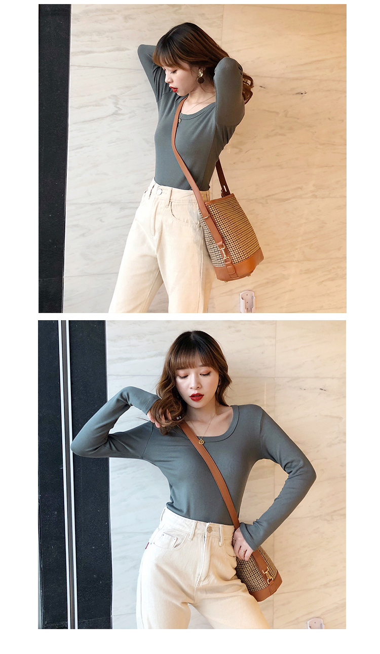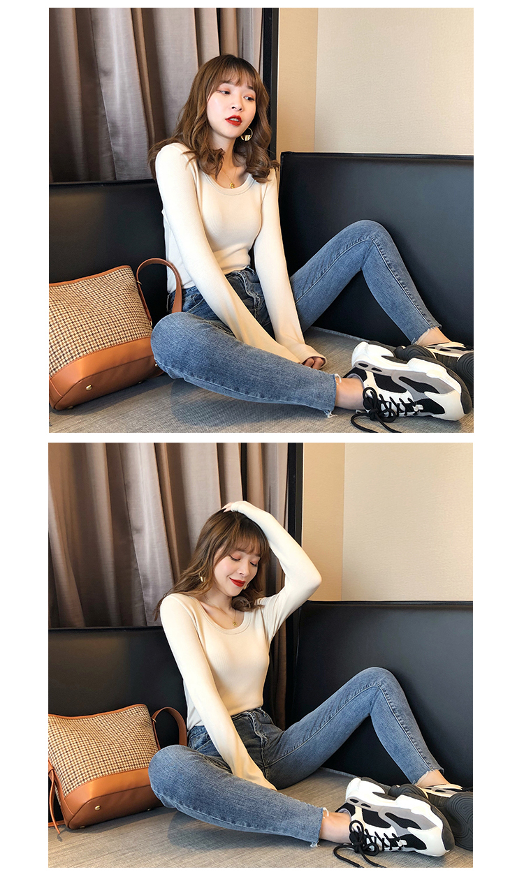 2019秋冬新款加絨打底衫女長袖圓領簡約加厚t恤修身百搭短款上衣1入