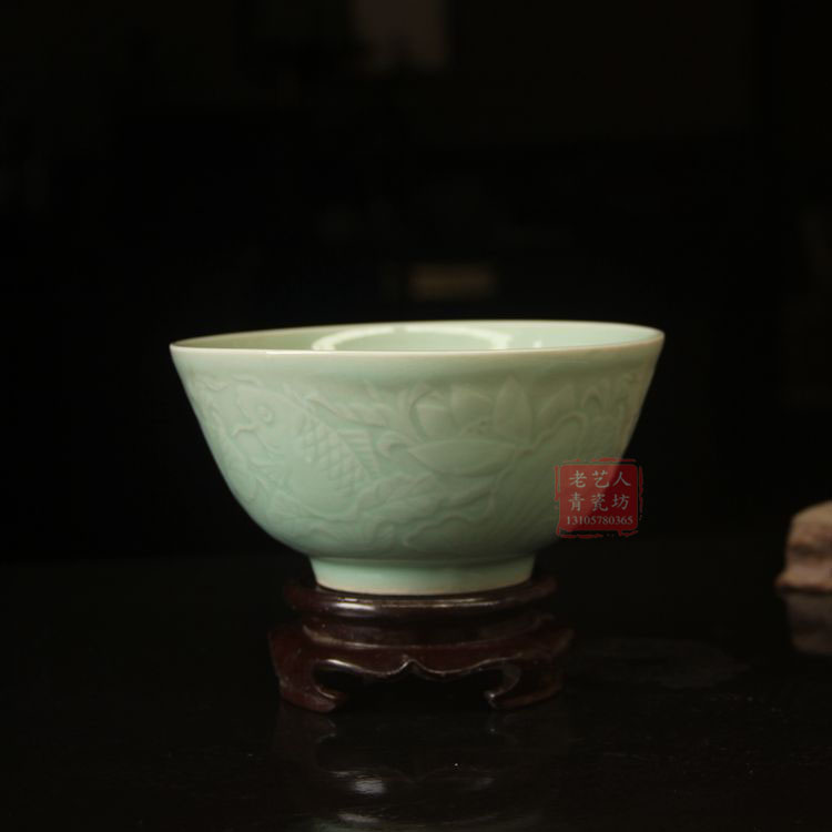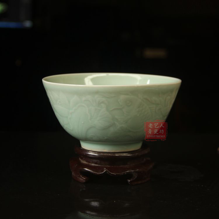 陶瓷80年代 懷舊 老國營廠柴窯 餐具 龍泉青瓷 收藏鯉魚 米飯碗1入