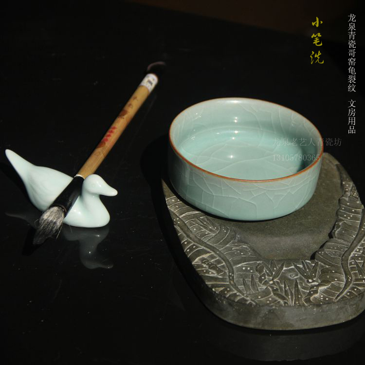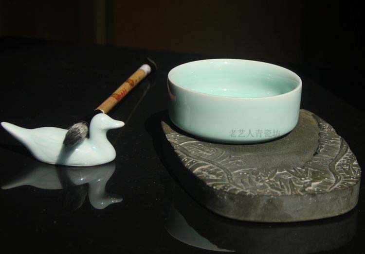 超值送禮品龍泉青瓷鳥籠配件鳥罐 功夫茶杯 青瓷花瓶文房筆洗筆架1入