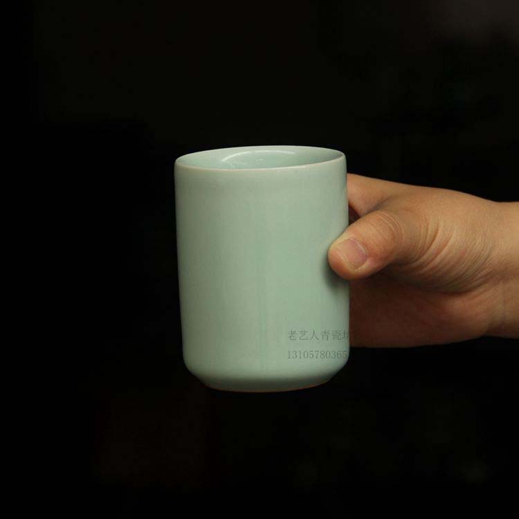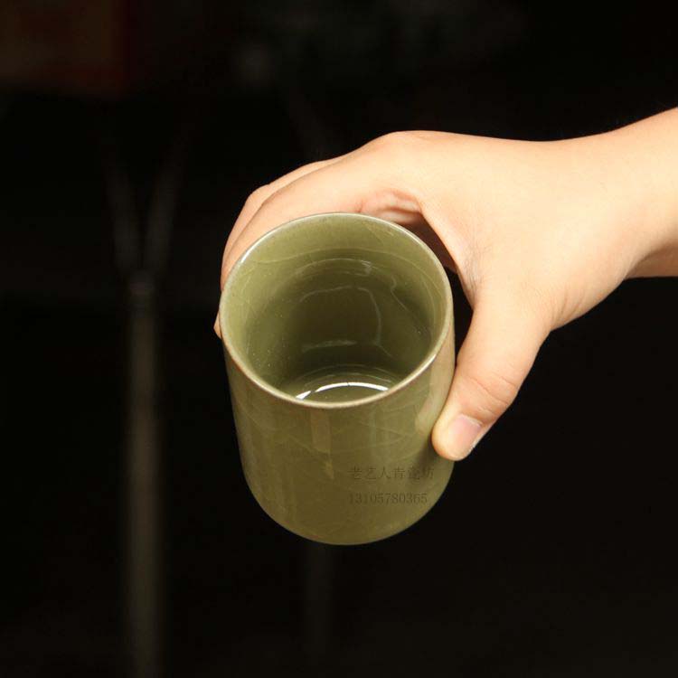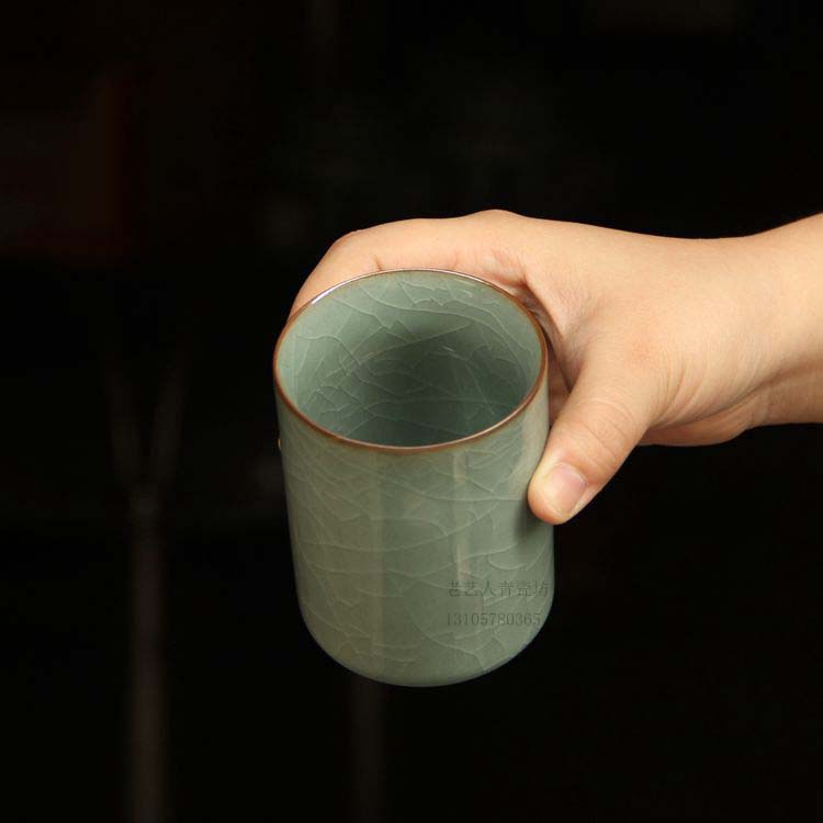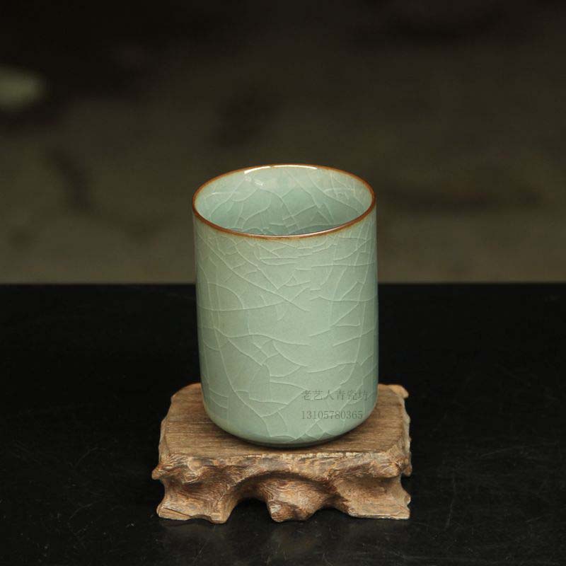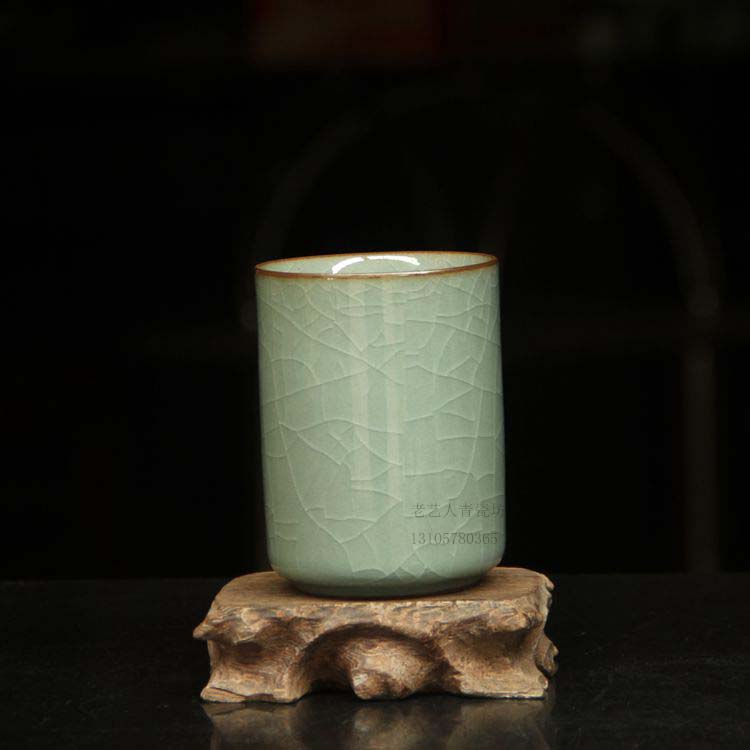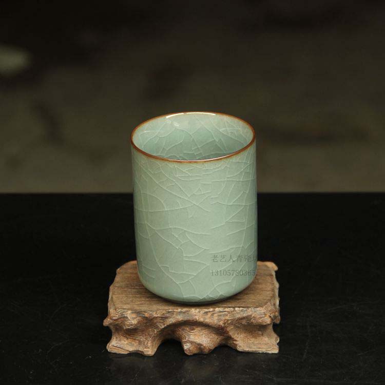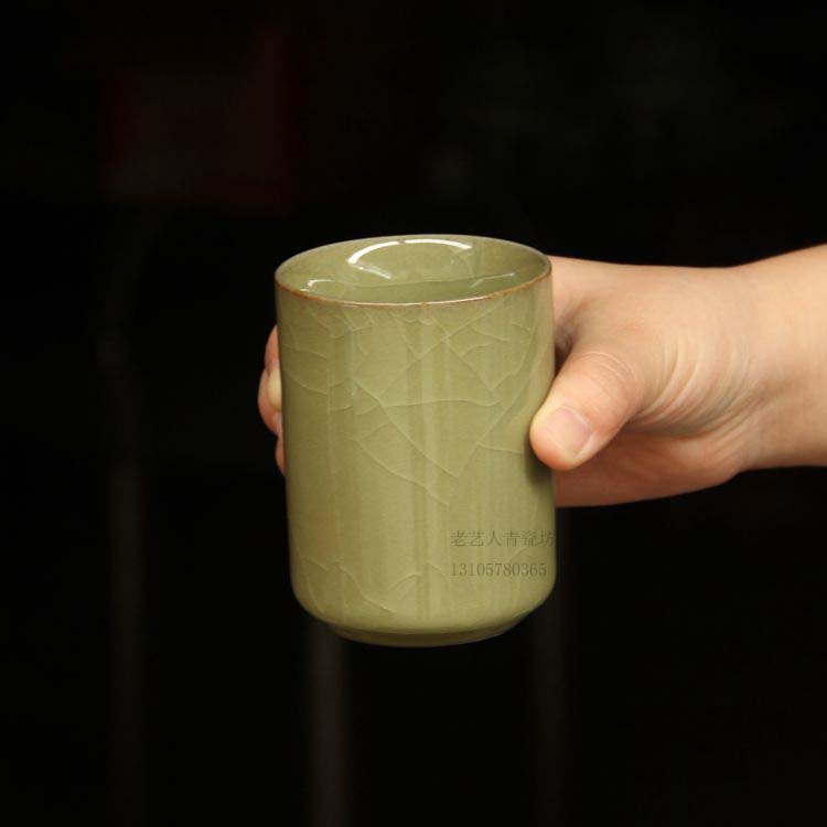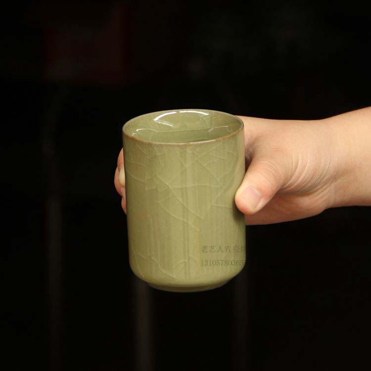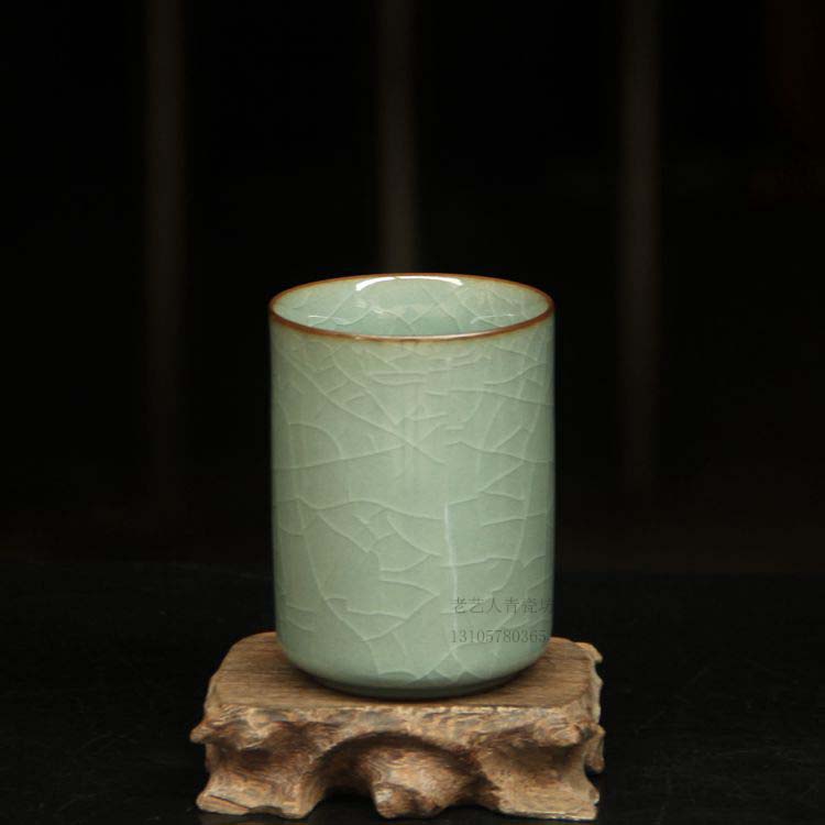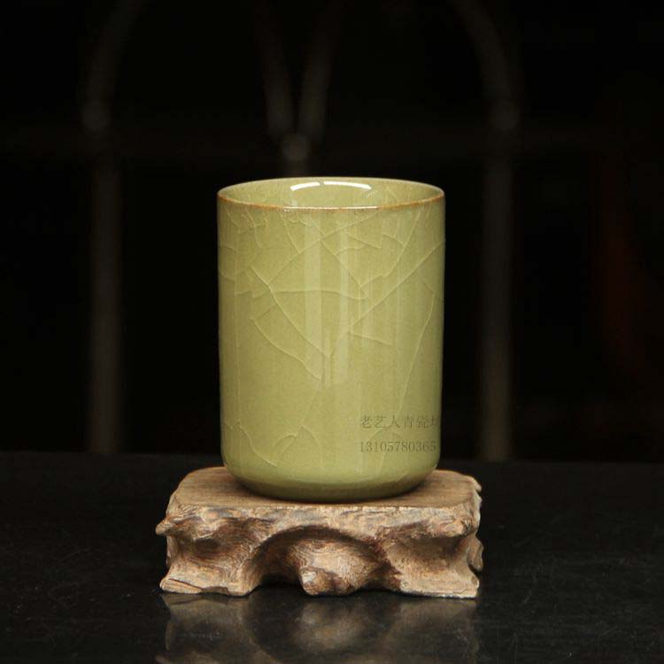 陶瓷青瓷米黃哥窯龜裂紋茶具 喝茶杯子 直口杯四色杯創意便攜水杯1入