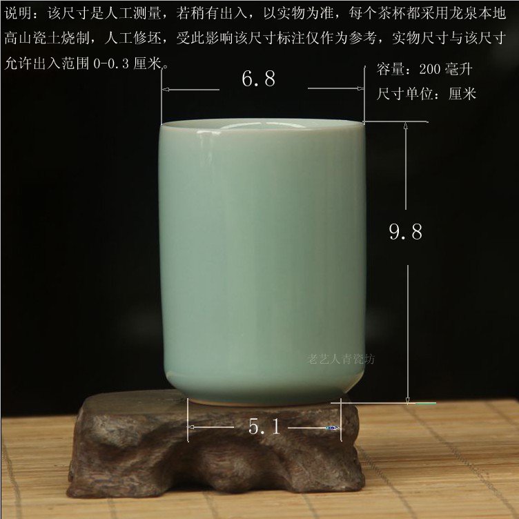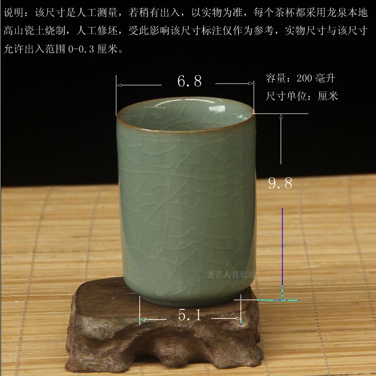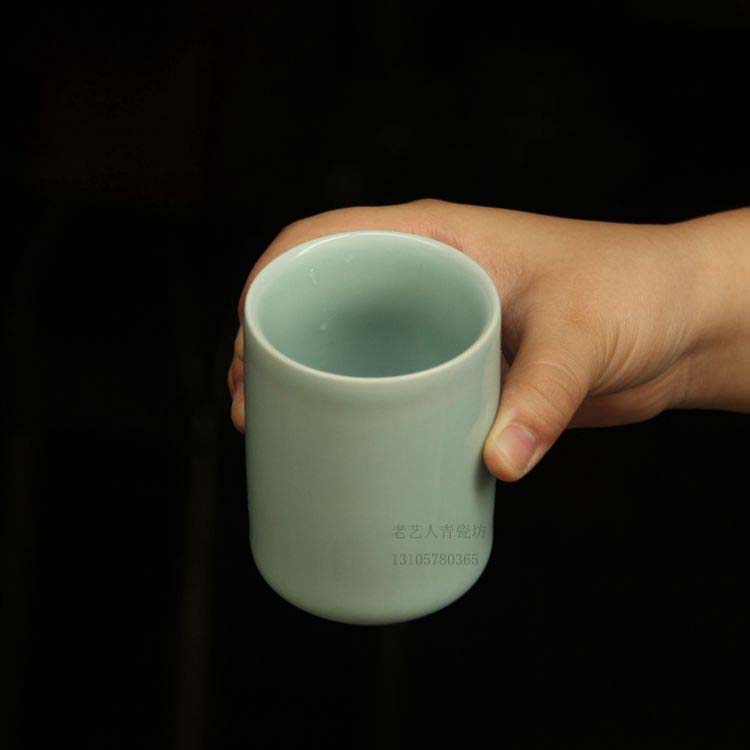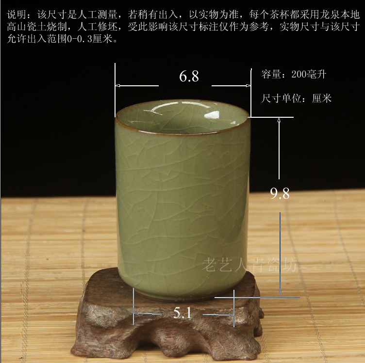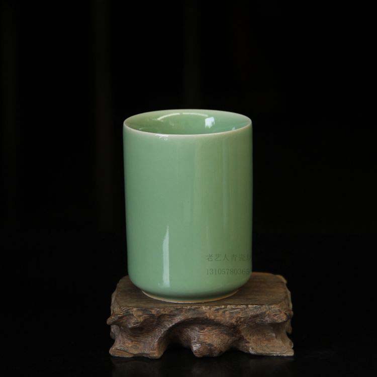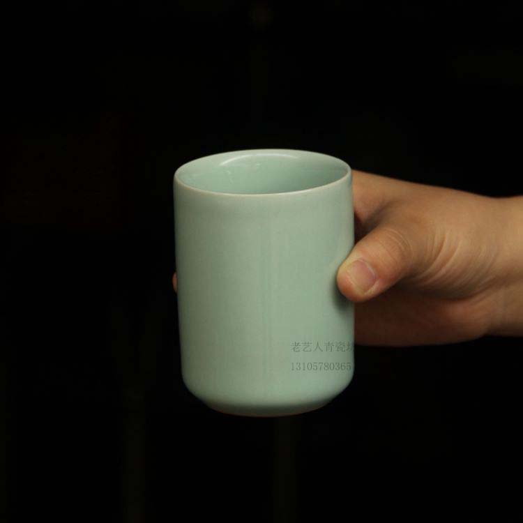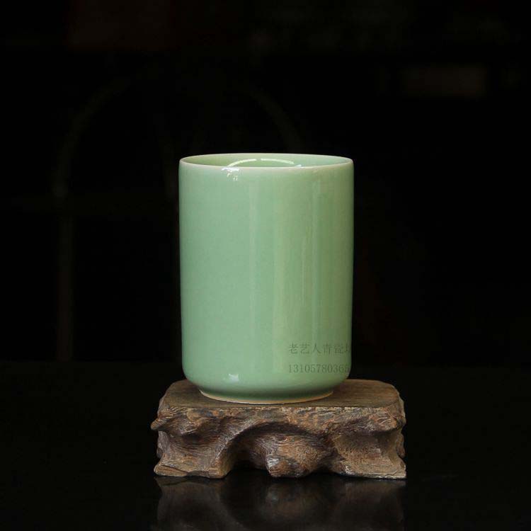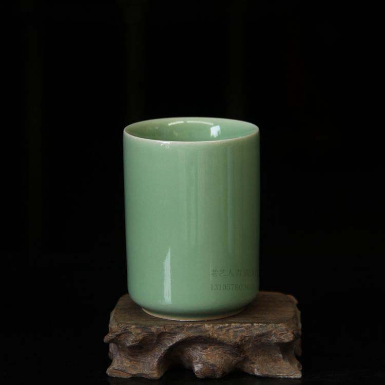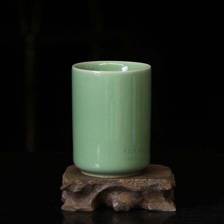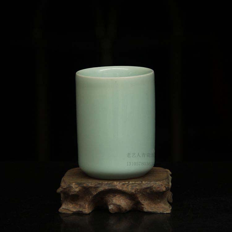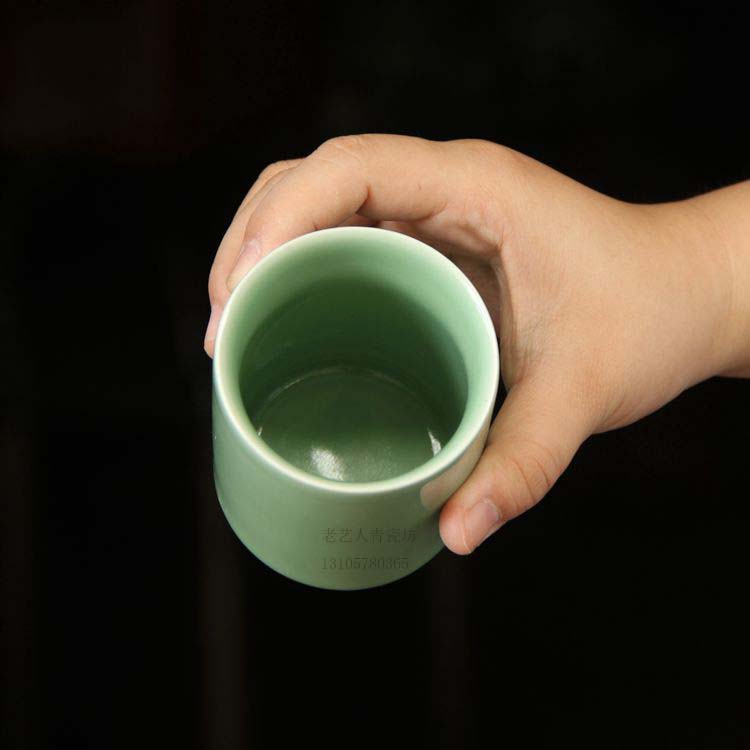 陶瓷青瓷米黃哥窯龜裂紋茶具 喝茶杯子 直口杯四色杯創意便攜水杯1入