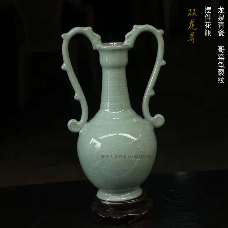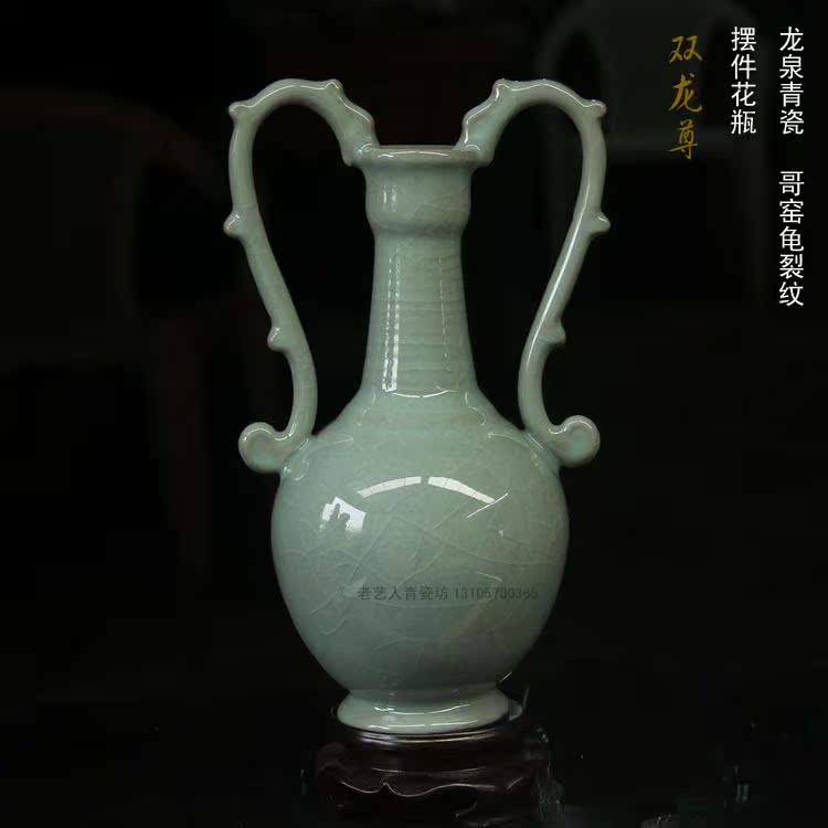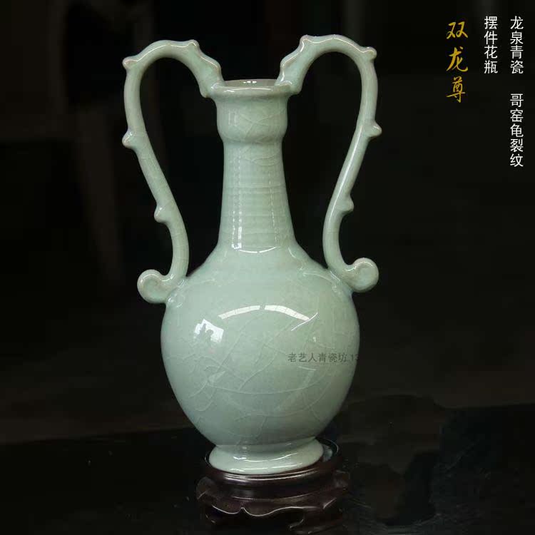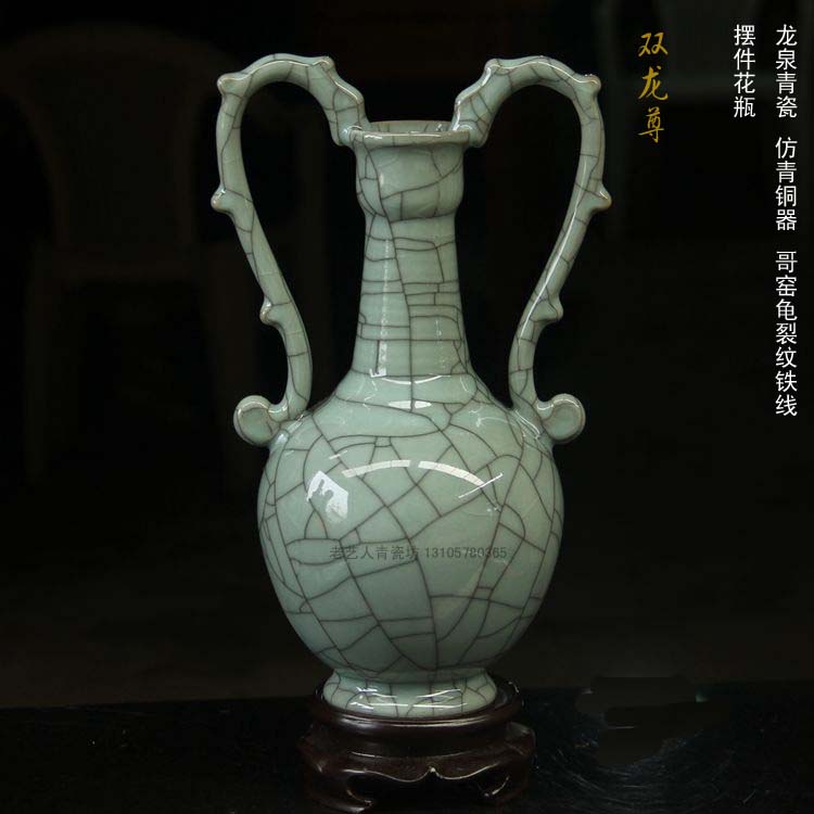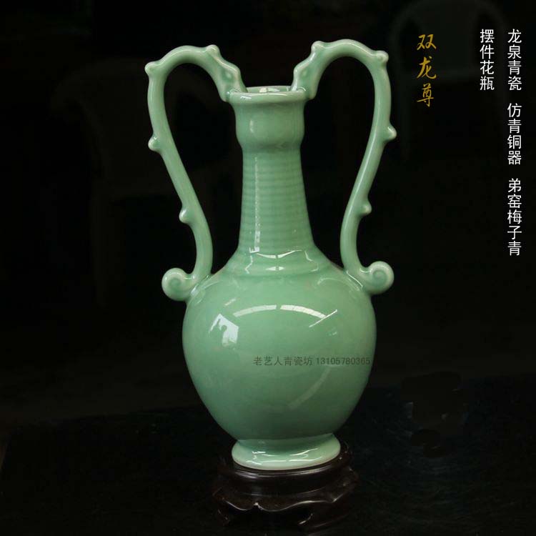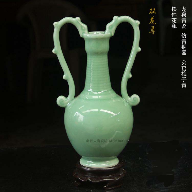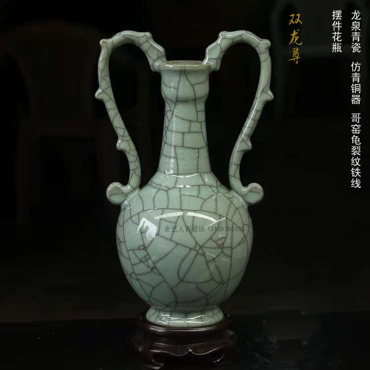 陶瓷精品新房電視柜仿青銅瓷器青瓷書房櫥柜仿古擺件花瓶1入