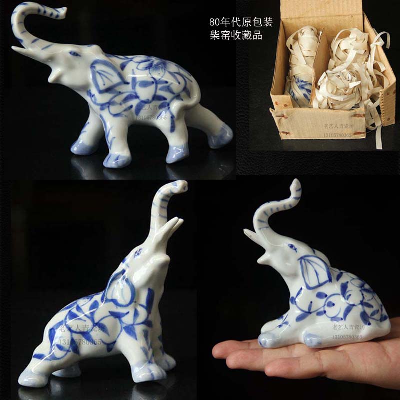 80年代原包裝青花小象一家 收藏博古架櫥窗 櫥柜裝飾擺件藝術品1入