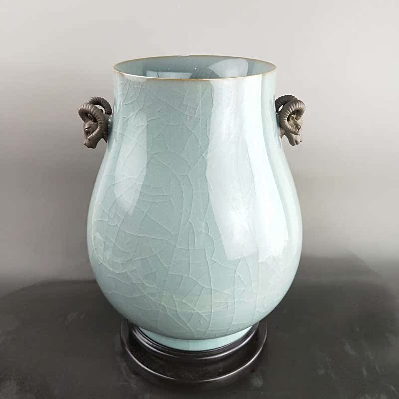 新年純手工新房喬遷吉祥尊貴青瓷哥窯家居藝術飾品擺件花瓶羊頭尊1入