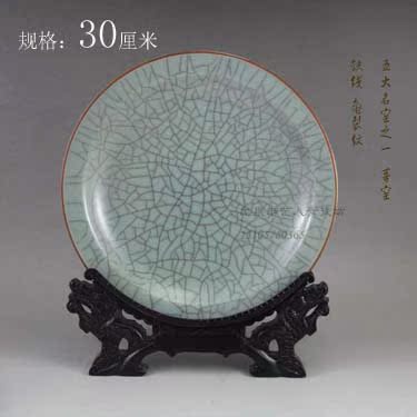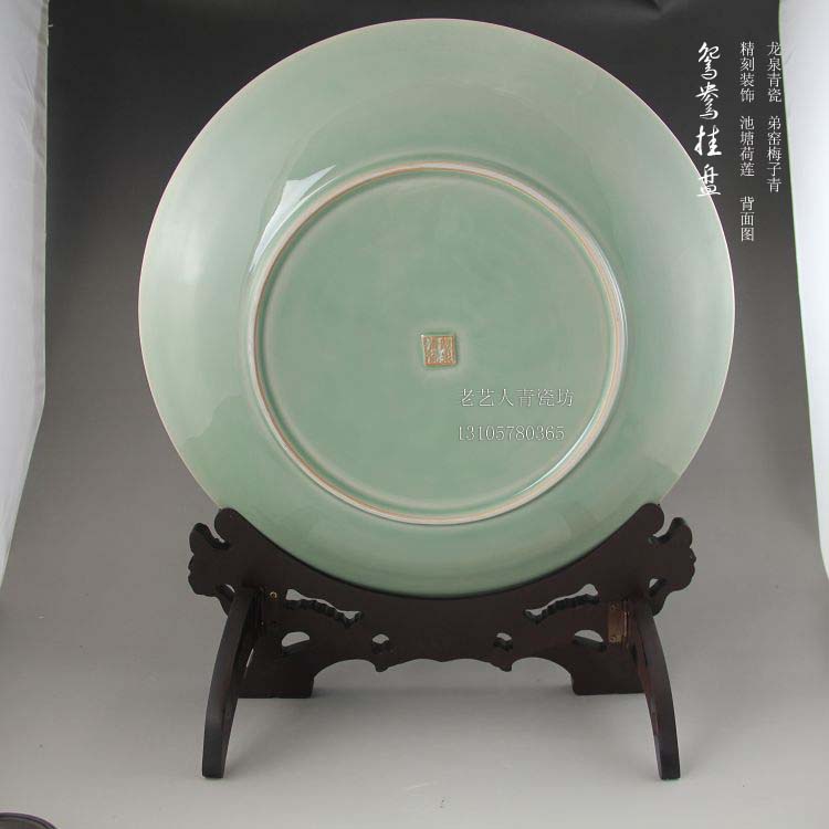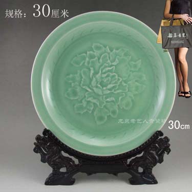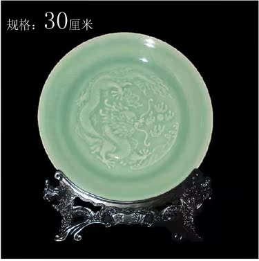 實惠陶瓷器青瓷25厘米 中式飾品玄關裝飾盤擺件 工藝品客廳掛盤1入