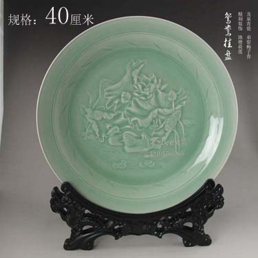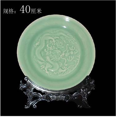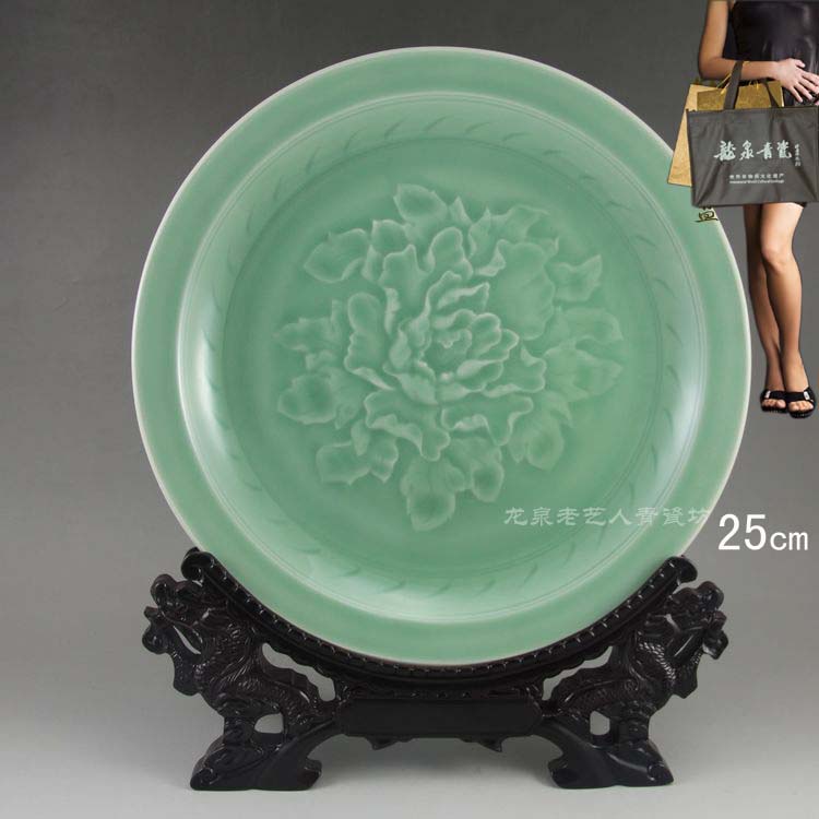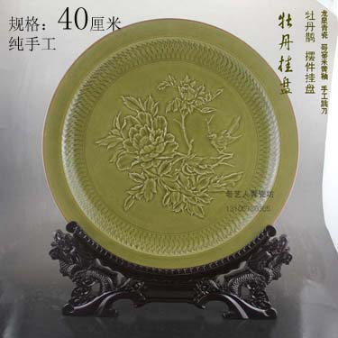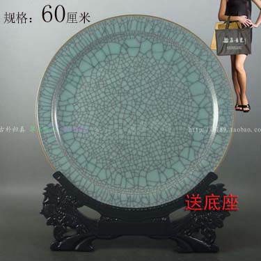 新年龍泉青瓷哥窯裝飾盤30厘米盤子客廳書房博古架玄關擺件掛盤1入