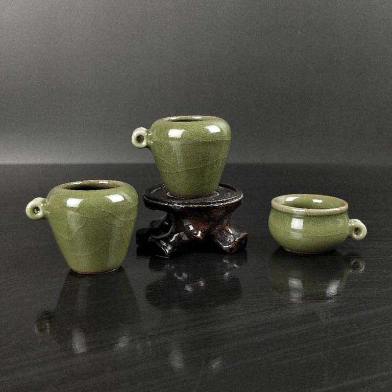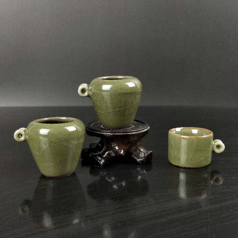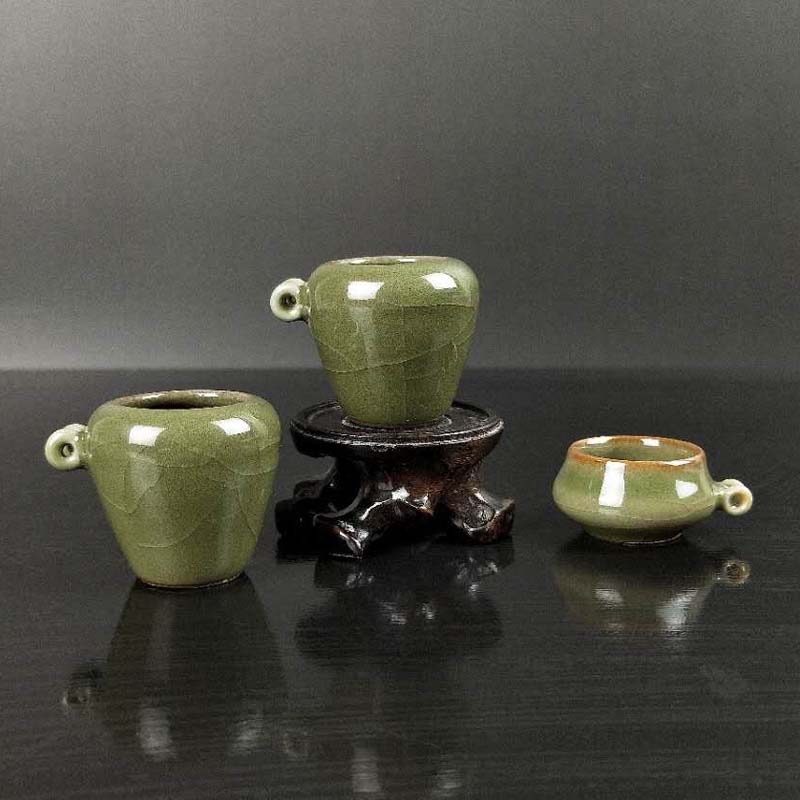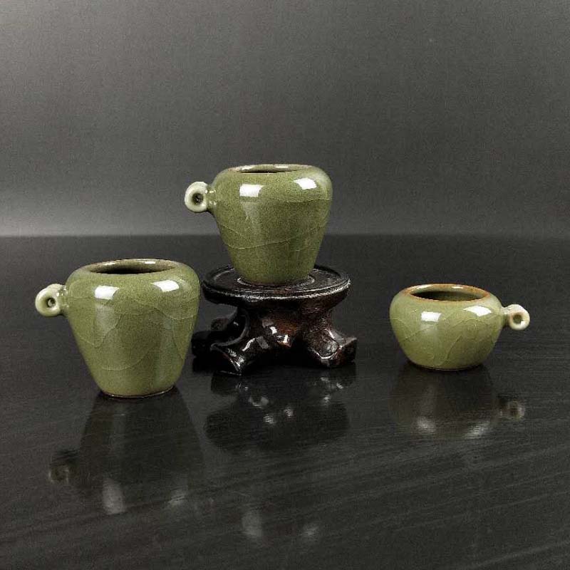 鳥食罐棗形青瓷 繡眼 紅子 貝子 金青鳥籠配件 麻雀小鳥碗 灰雀1入