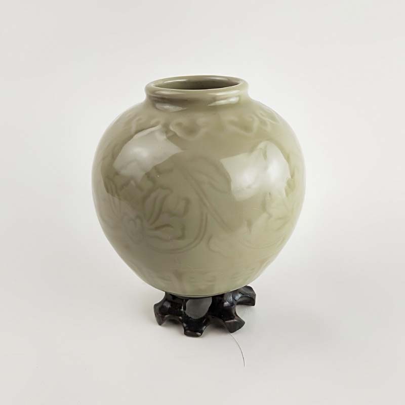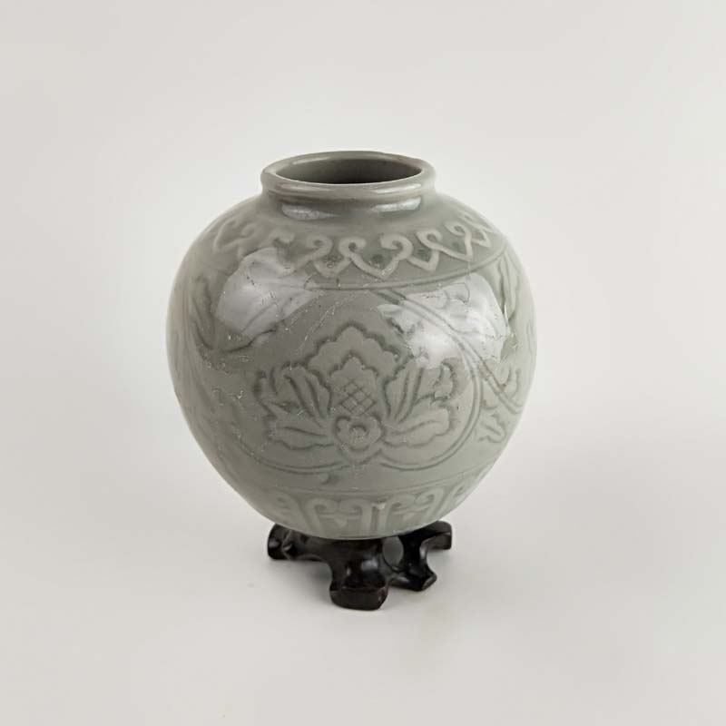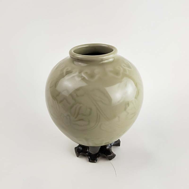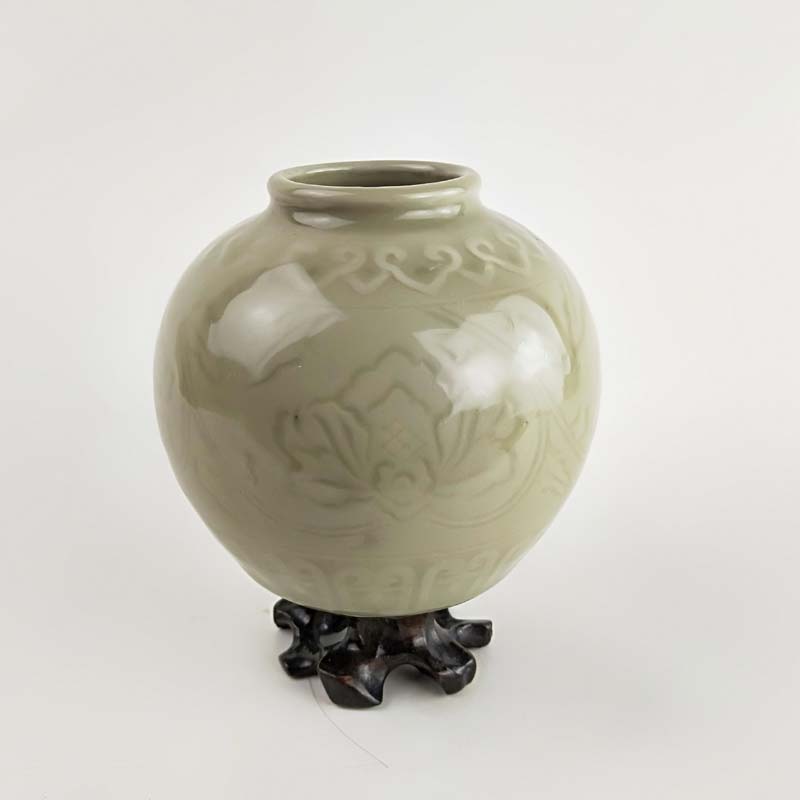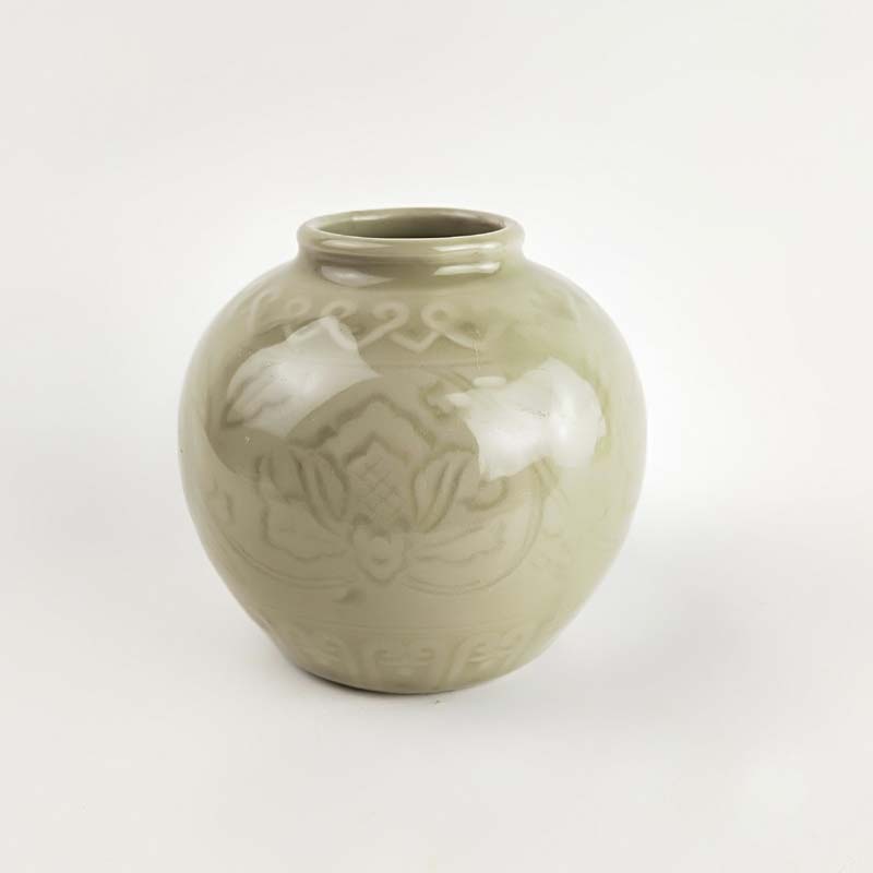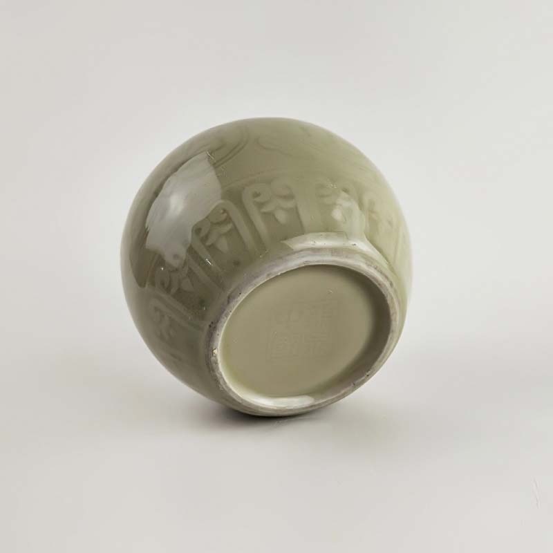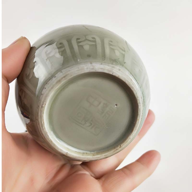 70年代老青瓷小罐 柴窯收藏品 窯變牡丹罐 博古架擺件 瓷器珍品1入
