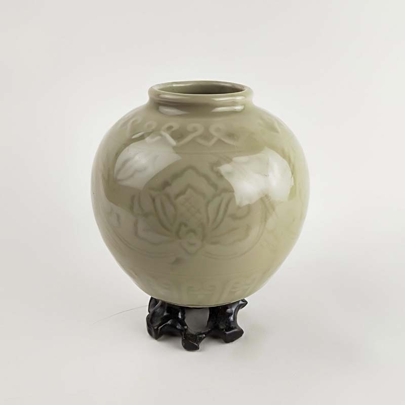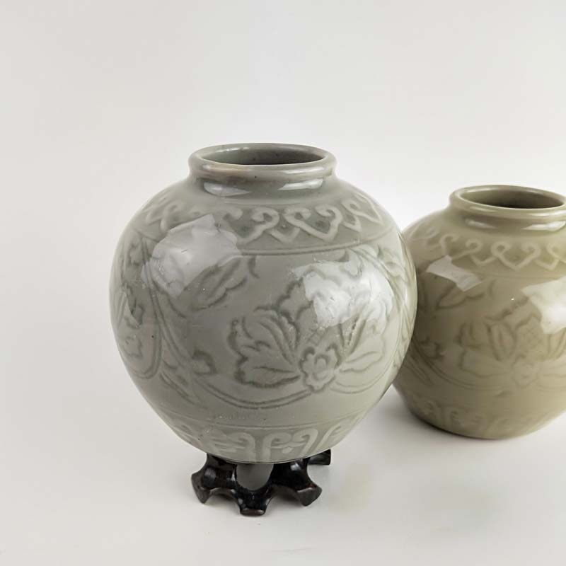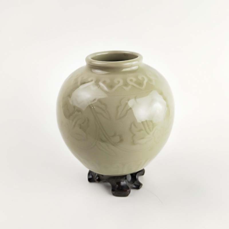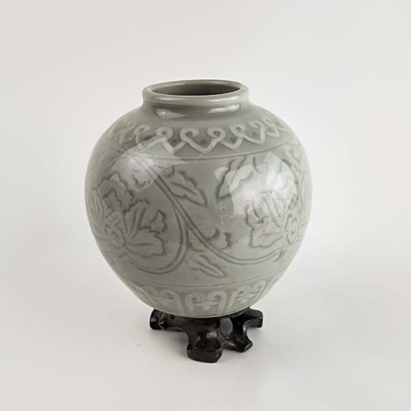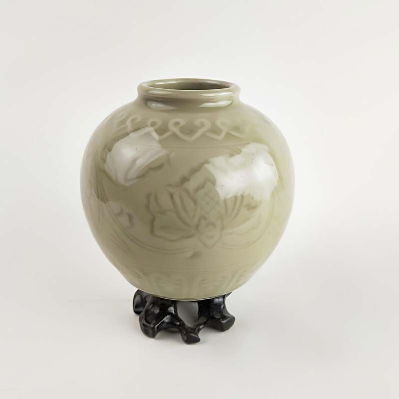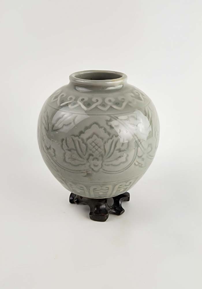 70年代老青瓷小罐 柴窯收藏品 窯變牡丹罐 博古架擺件 瓷器珍品1入