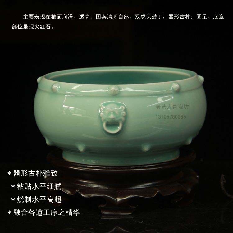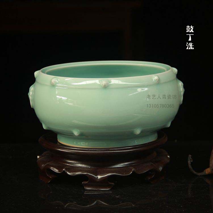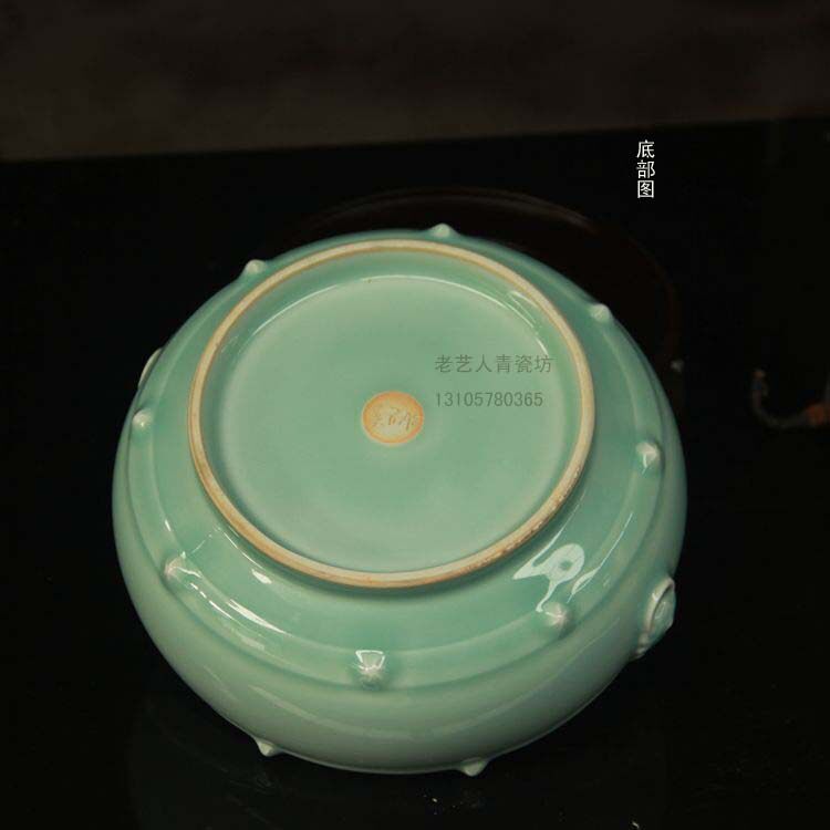 新年龍泉青瓷手工拉坯 陶瓷鼓丁裝飾盤 家居飾品擺件文房四寶筆洗1入