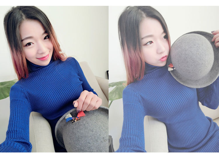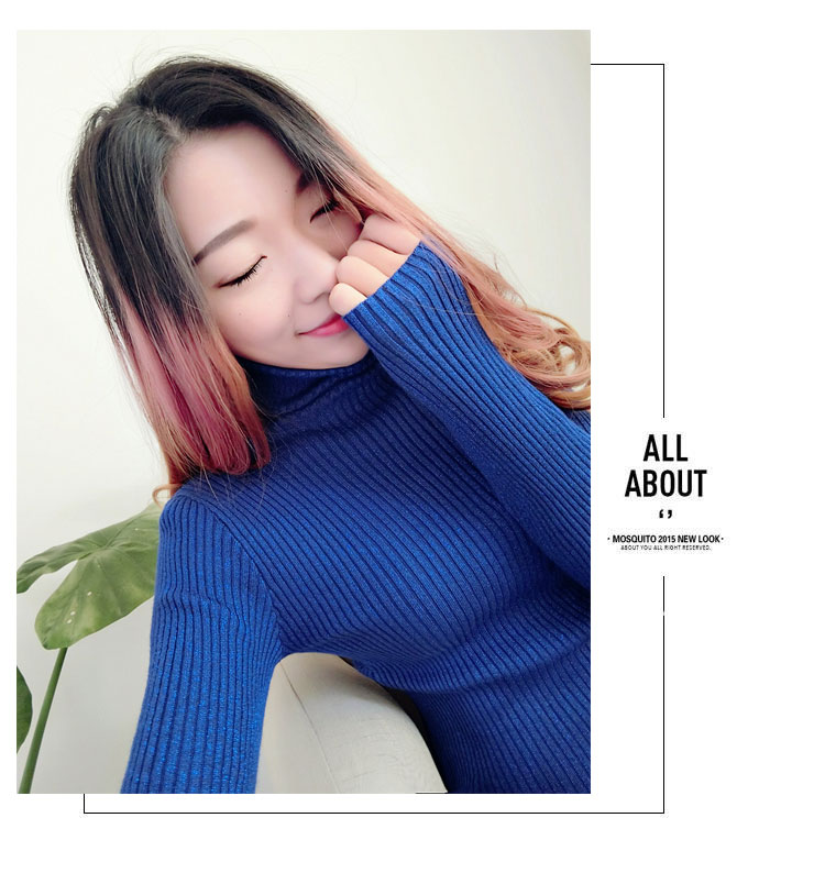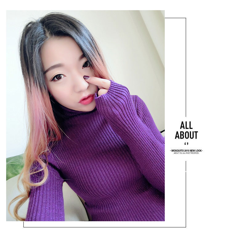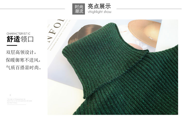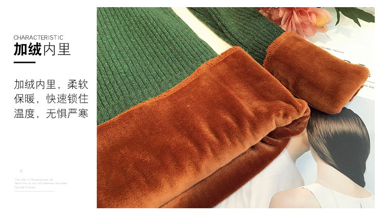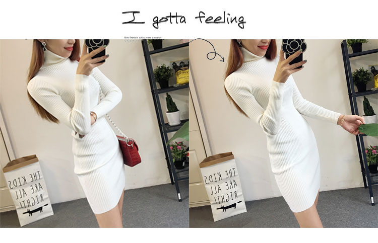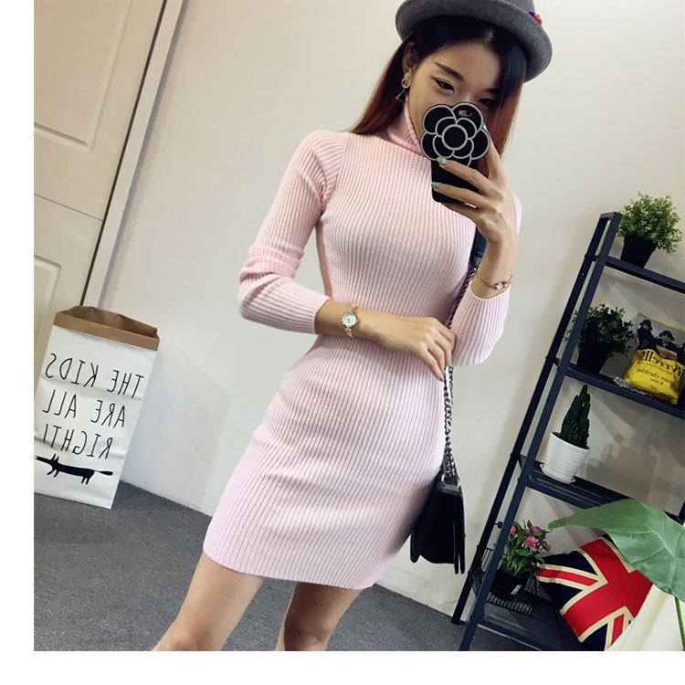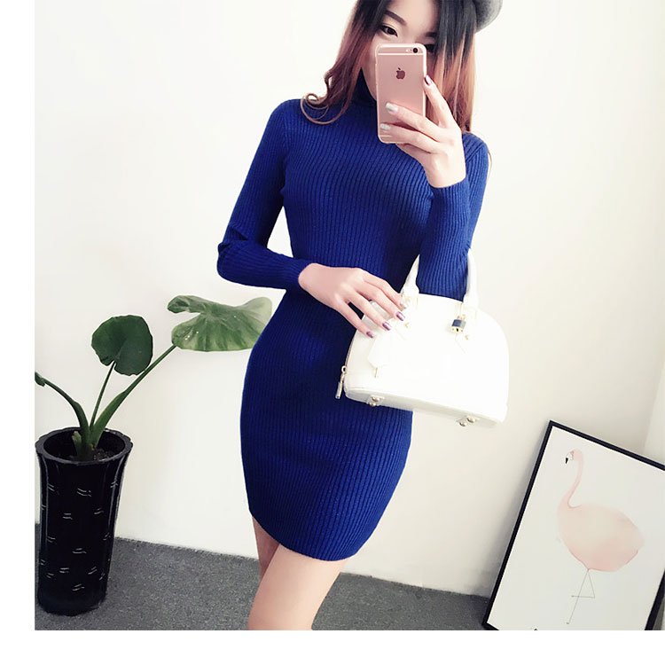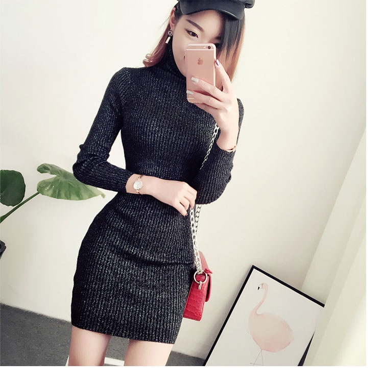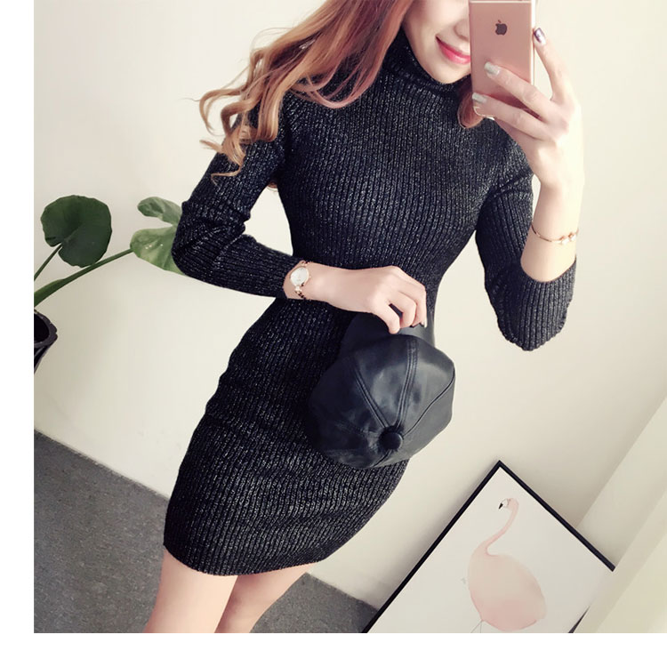 高領亮絲針織連衣裙女中長款加絨加厚套頭毛衣修身顯瘦包臀打底裙1入