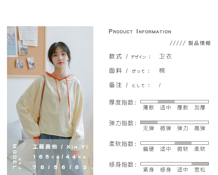 衛衣2019新款女潮初秋季韓版學生寬松春秋裝薄款外套短款長袖上衣1入