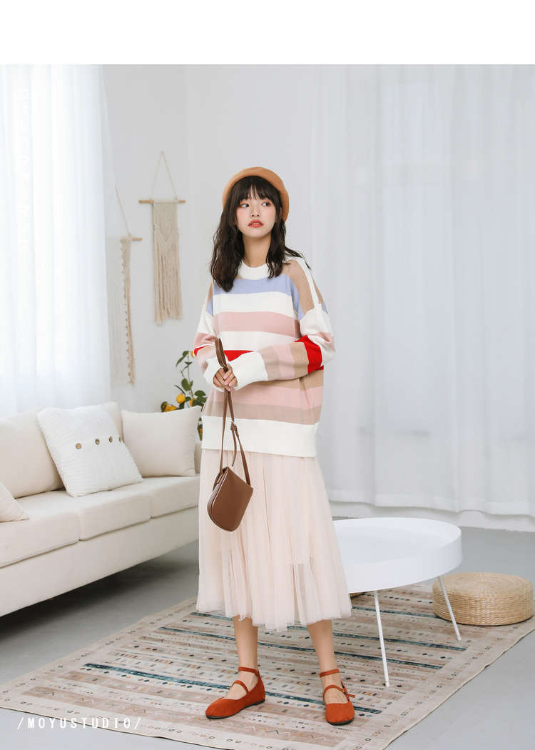 茉語家 2019秋季新款裙子大擺百褶裙a字高腰中長款松緊腰半身裙女1入
