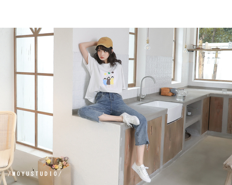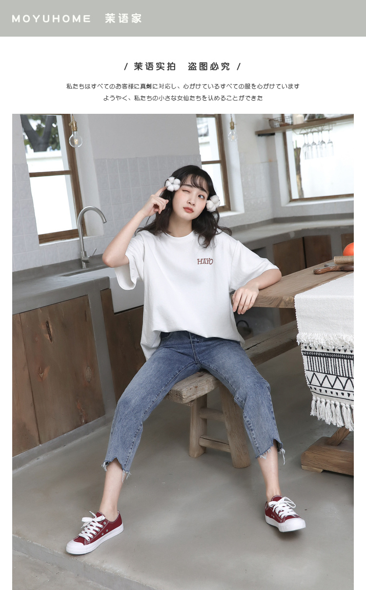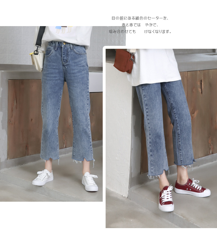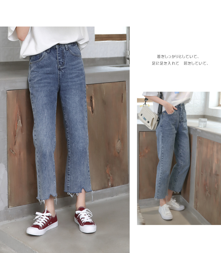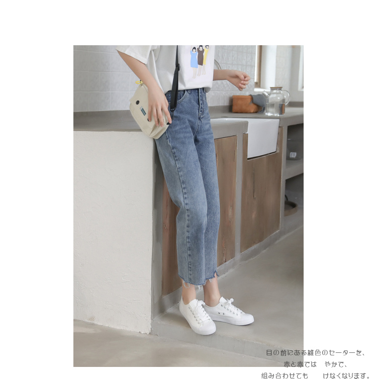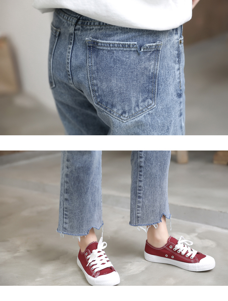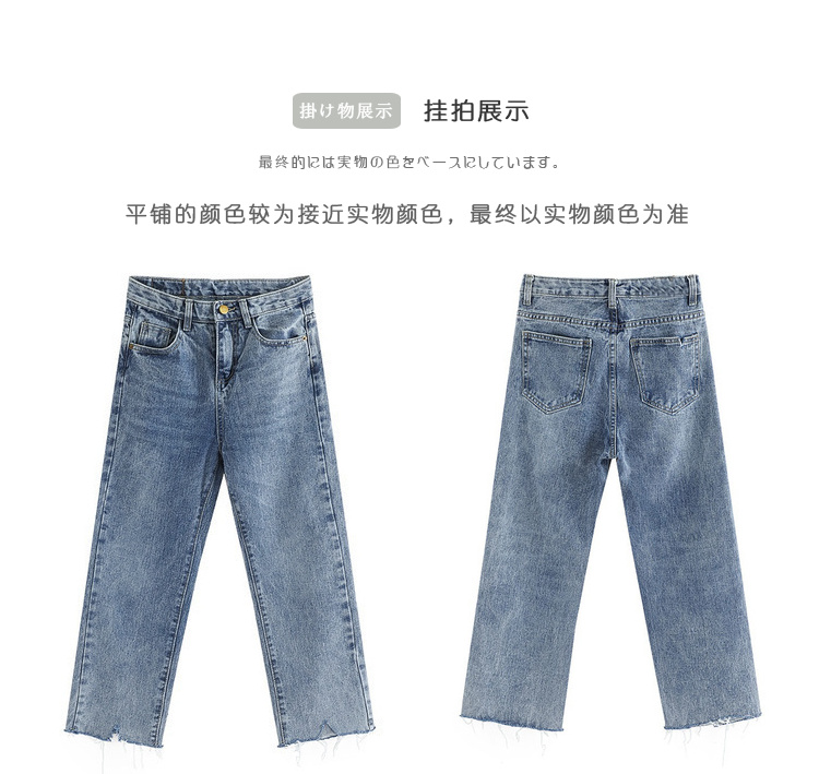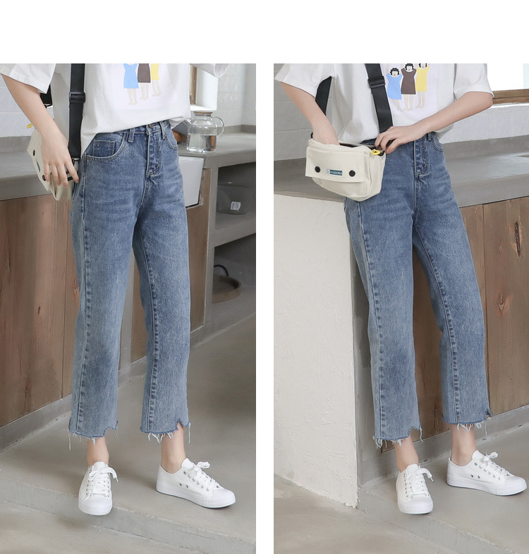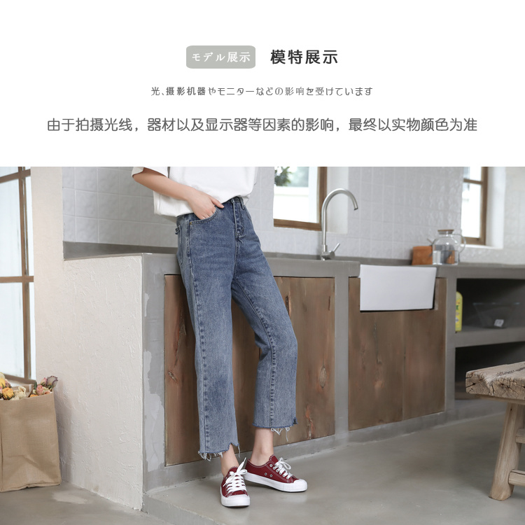 2019新款春秋季韓版百搭褲子學生高腰顯瘦寬松牛仔褲女九分直筒褲1入