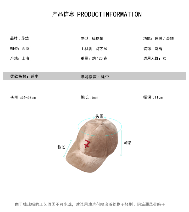 2019新款字母刺繡棒球帽女秋季鴨舌帽子韓版百搭潮時尚秋天厚保暖1入