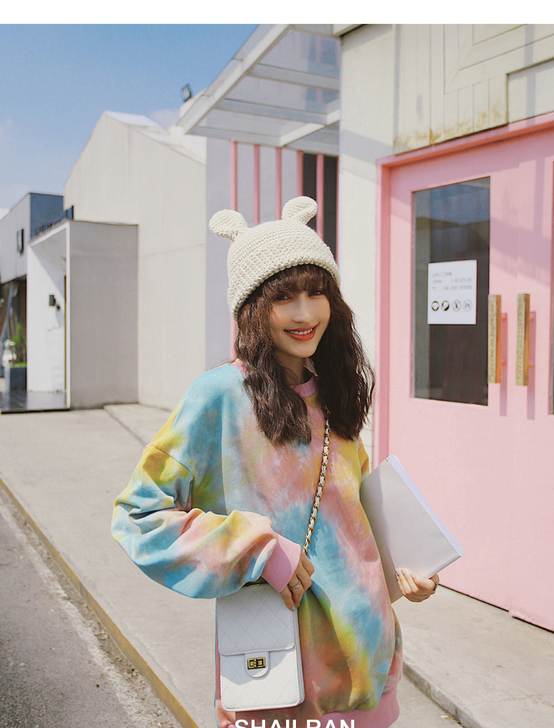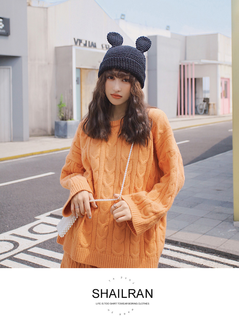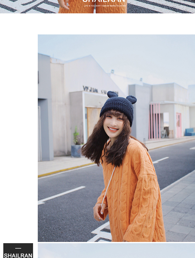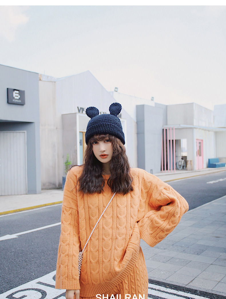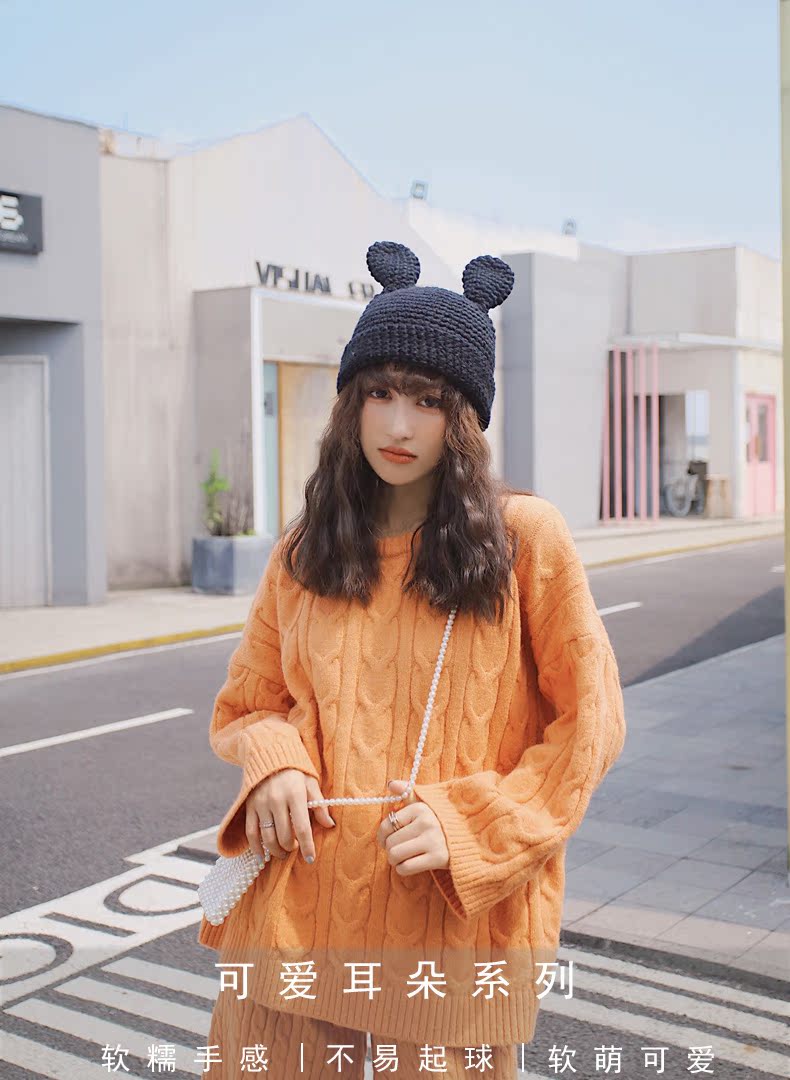 黑色軟萌可愛粗毛線兔耳朵毛線帽女冬季日系韓版百搭潮帽子秋冬厚1入