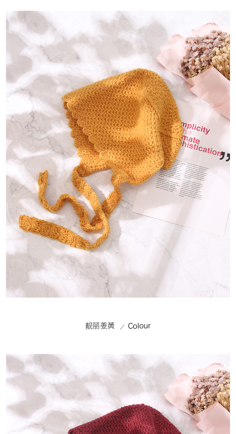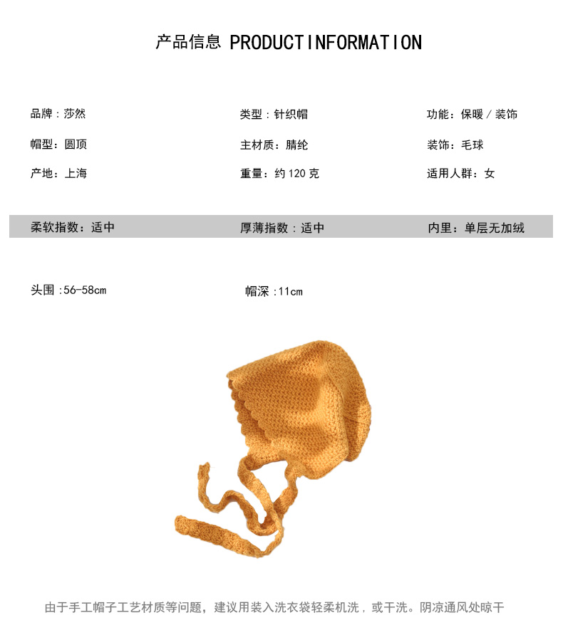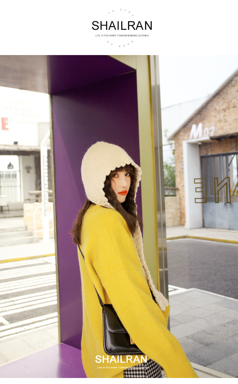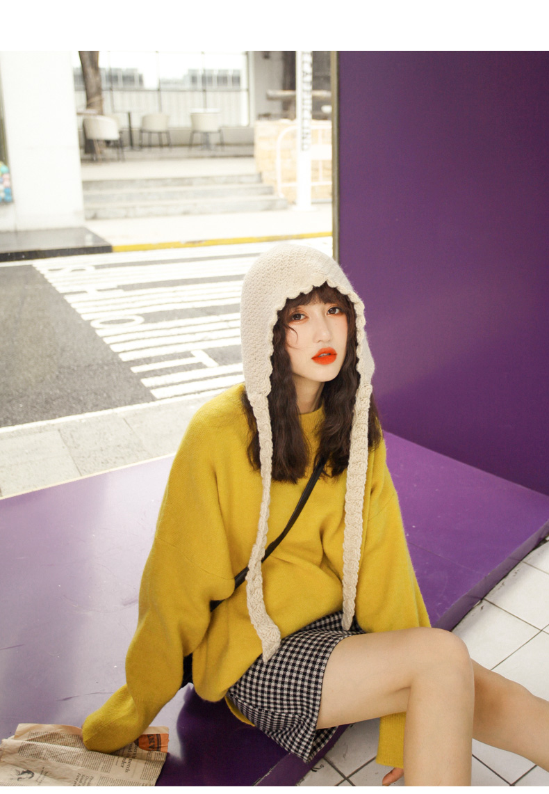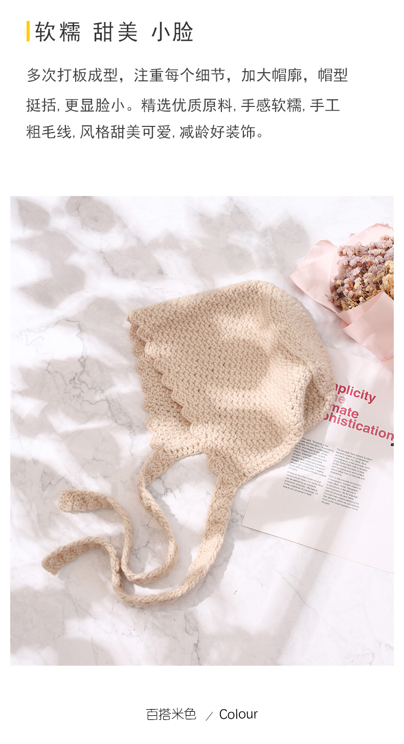韓國米色日系蘿莉帽針織毛線帽系帶帽子女秋天護耳飄帶甜美韓版潮1入