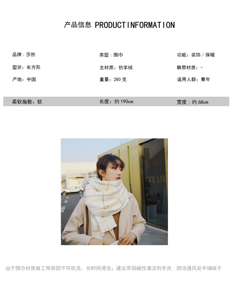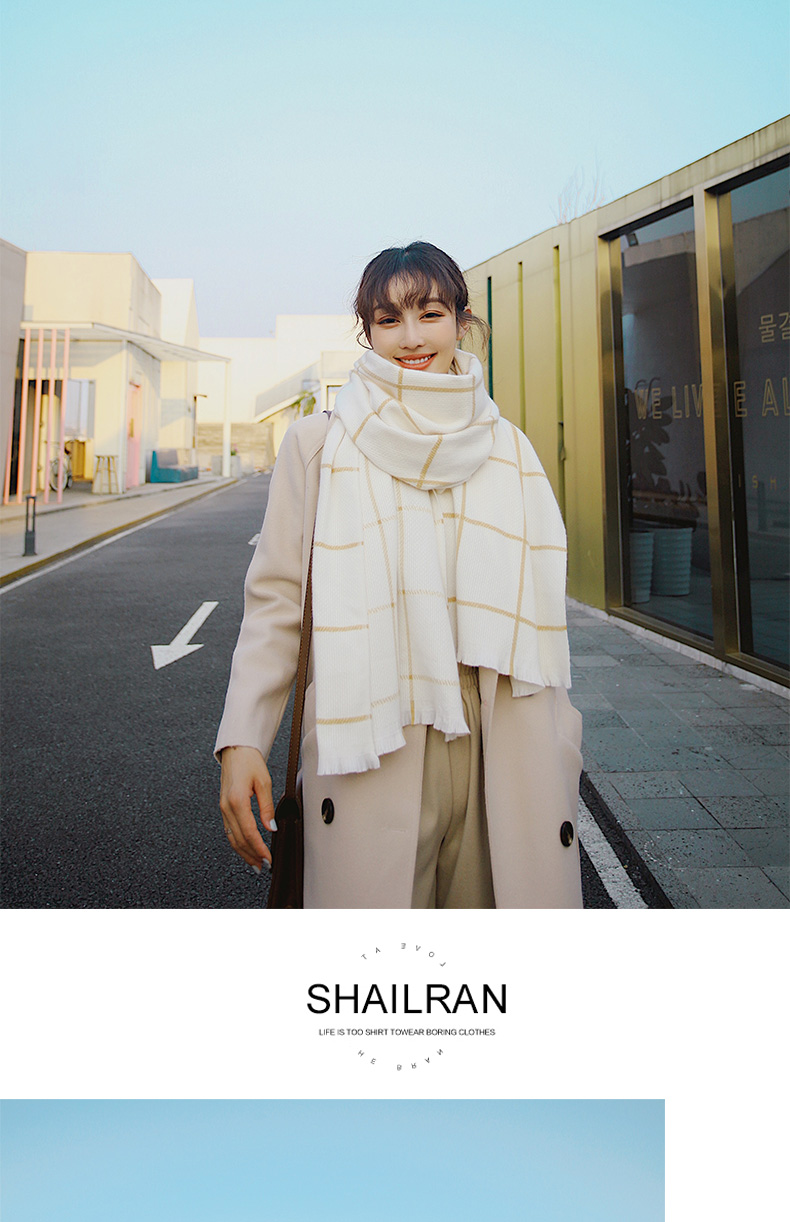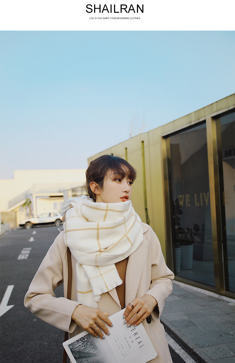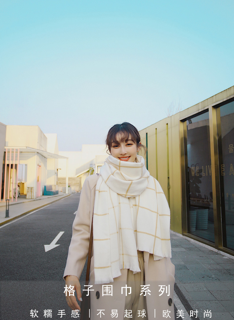 2019新款東大門格子圍巾女冬季日系韓版百搭休閑加厚保暖大披肩長1入