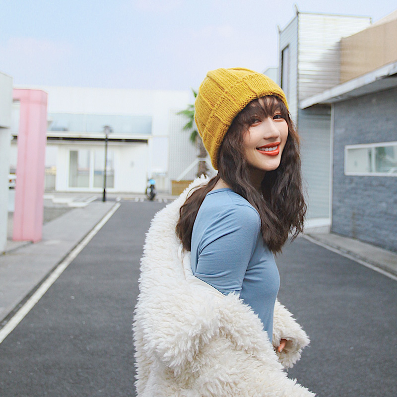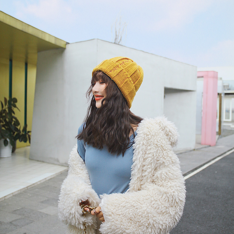 針織毛線帽子女秋冬季韓版百搭甜美可愛冬天保暖冷帽男ins韓國潮1入