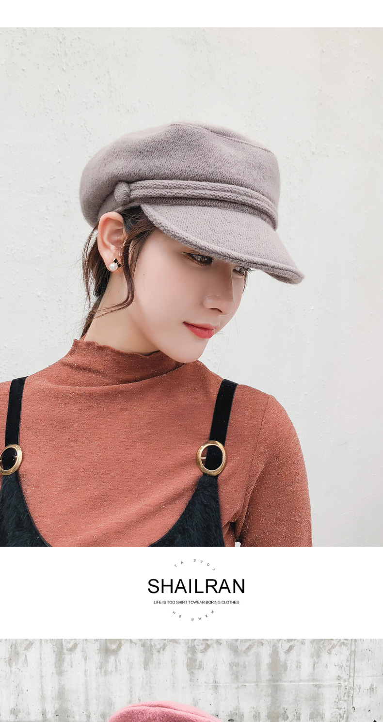 2018秋季新款羊毛針織秋冬平頂帽女貝雷帽女秋天百搭海軍帽英倫1入