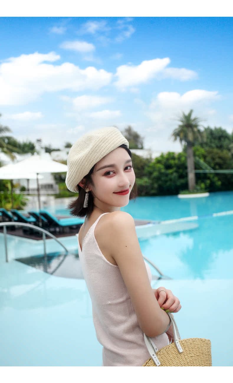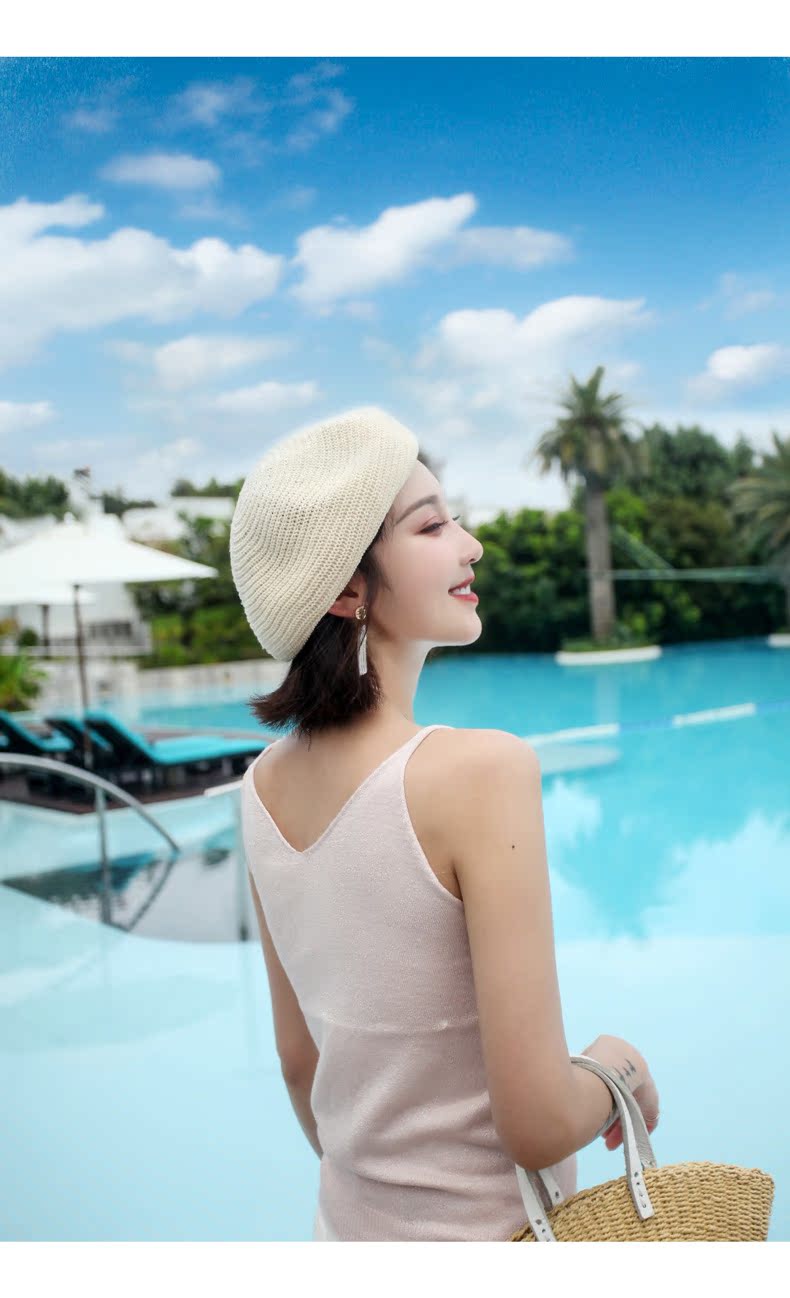 貝雷帽女夏季薄款韓版帽子夏日百搭日系畫家帽子夏天透氣英倫復古1入