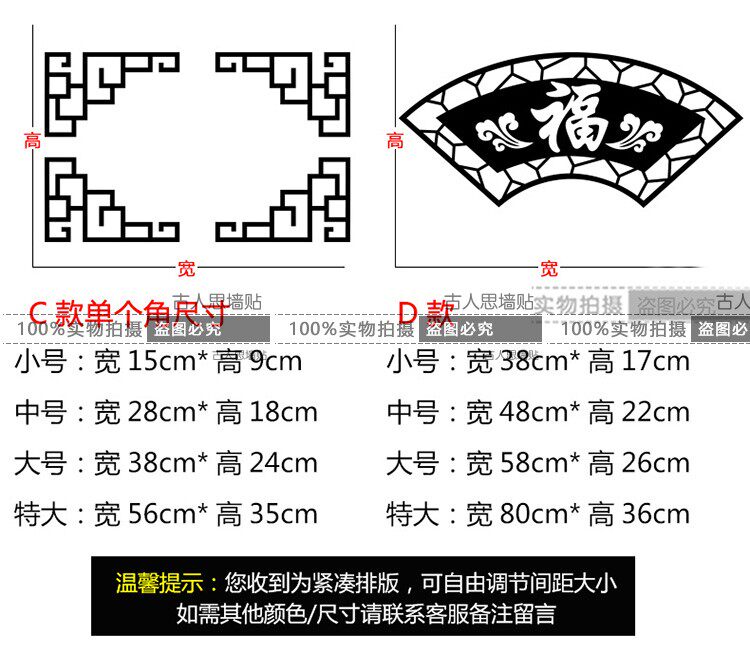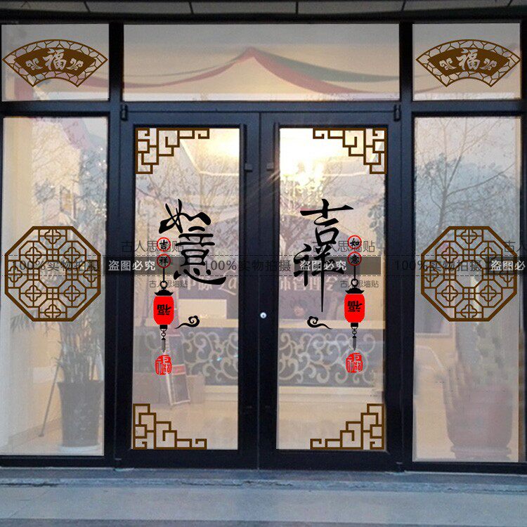 中式復古玻璃門窗墻貼紙 移門對角花陽臺窗花貼古典中國風店鋪貼1入