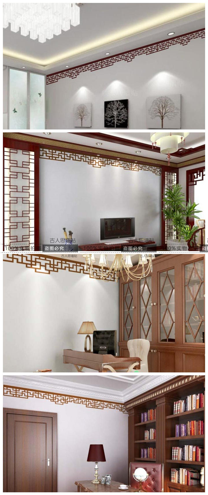中式頂角線腰線墻貼紙中國風古典邊框花紋貼客廳電視沙發背景墻貼1入