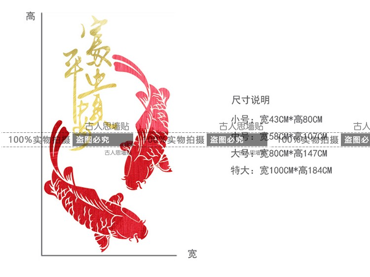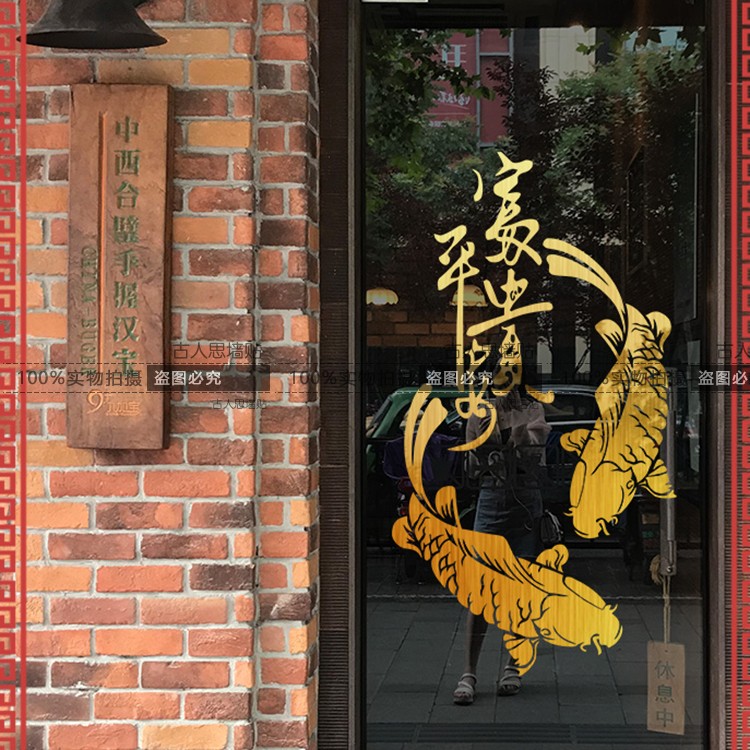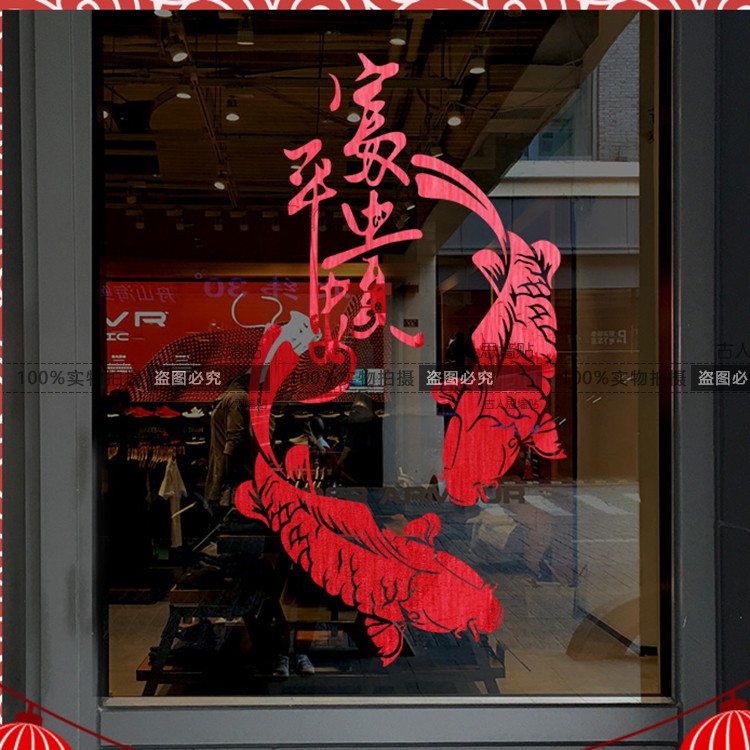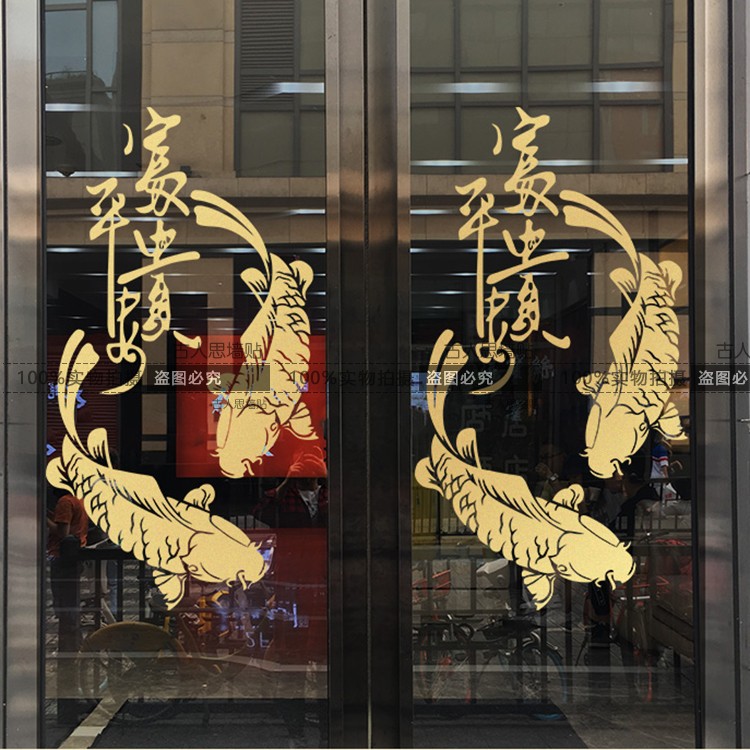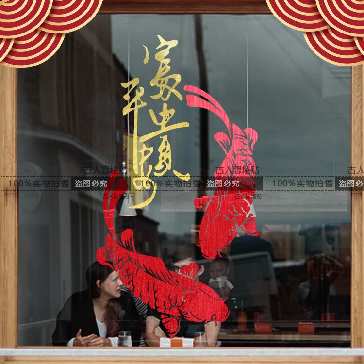 2020新年春節喜慶墻貼紙 中式富貴錦鯉客廳墻貼店鋪櫥窗玻璃門貼1入