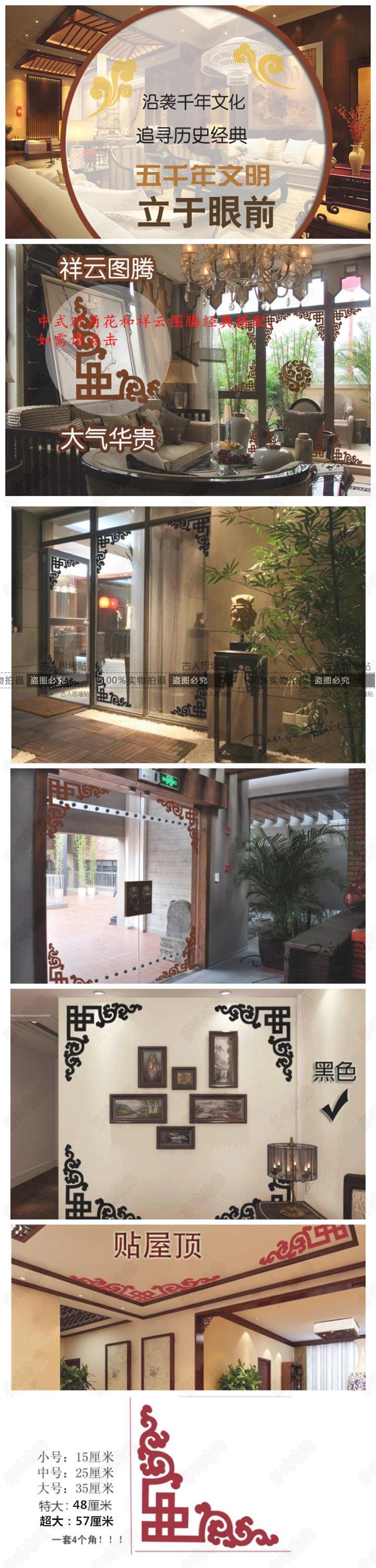 中式對角花墻貼紙 客廳書房家居玻璃櫥窗裝飾墻貼 中國風墻貼角花1入