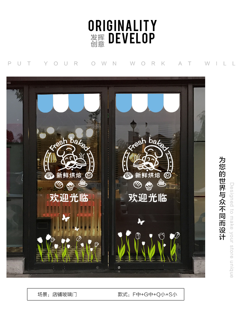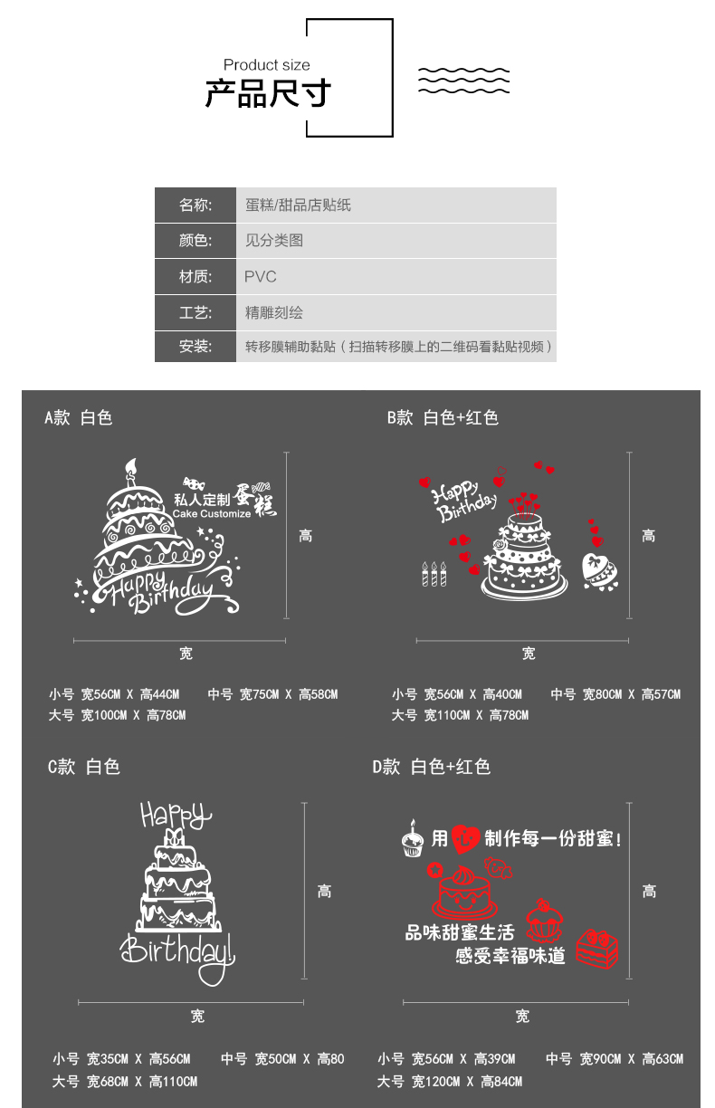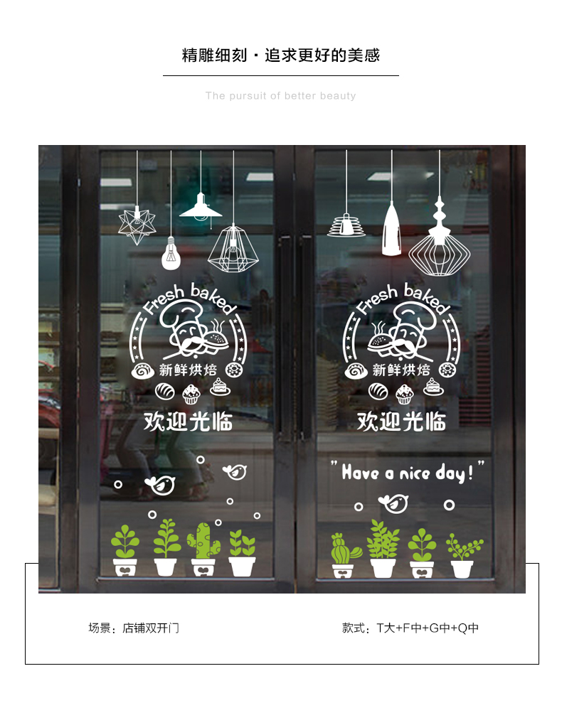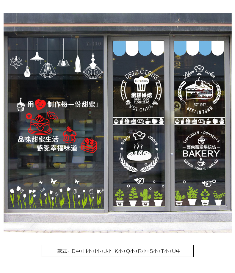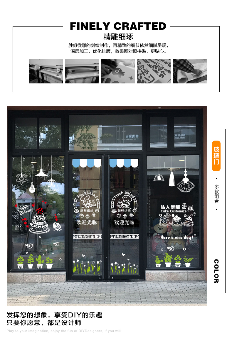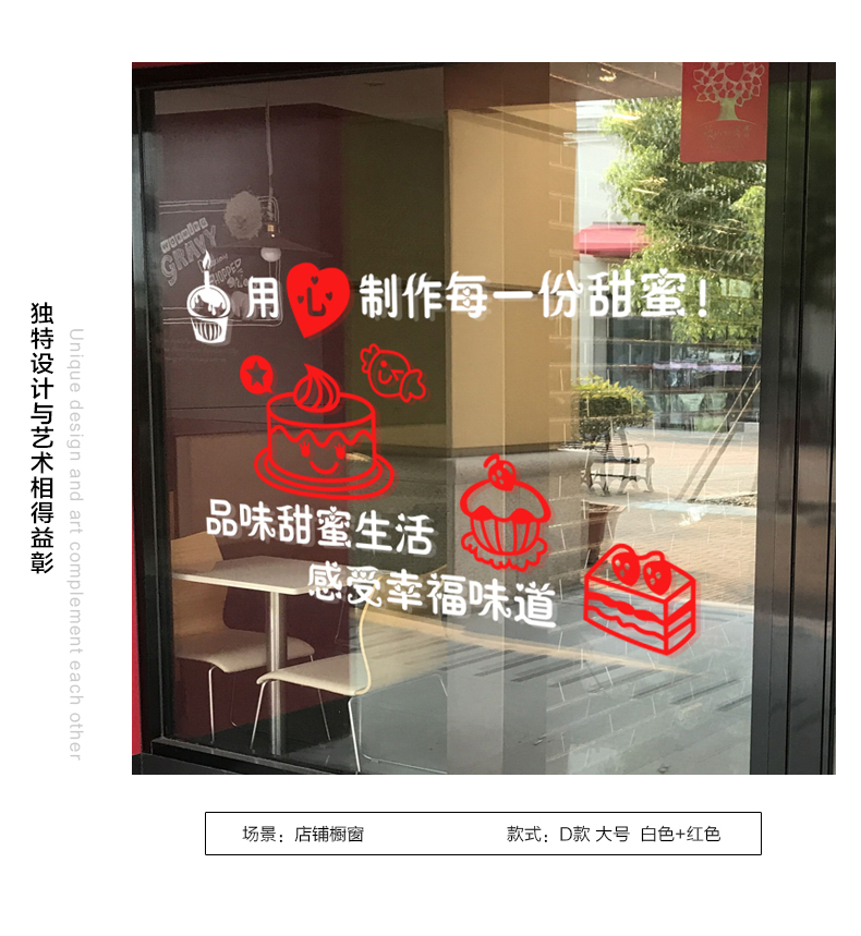 蛋糕店面包房玻璃門貼紙生日烘焙甜品裝飾個性創意櫥窗墻貼畫窗花1入