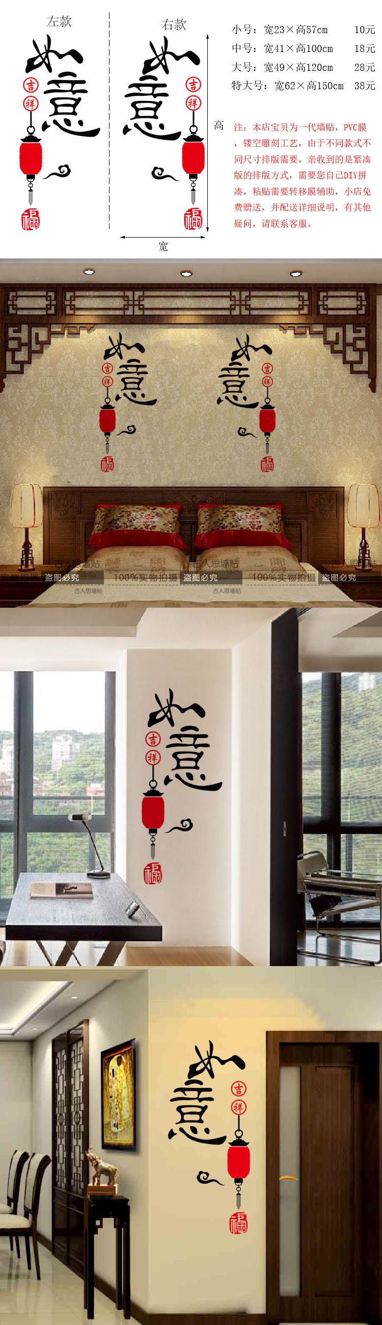 吉祥如意紅燈籠中式復古墻貼紙 客廳沙發電視背景墻裝飾貼中國風1入