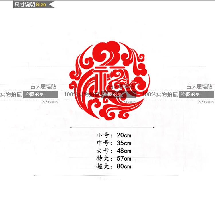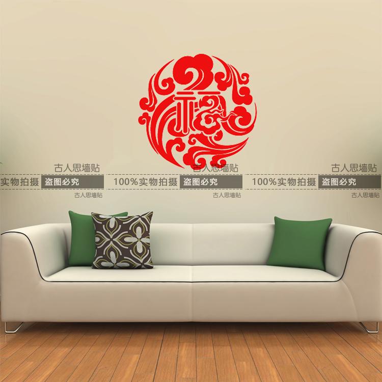 中國風祥云福字中式墻貼紙 客廳電視沙發背景裝飾 玻璃櫥窗門貼1入