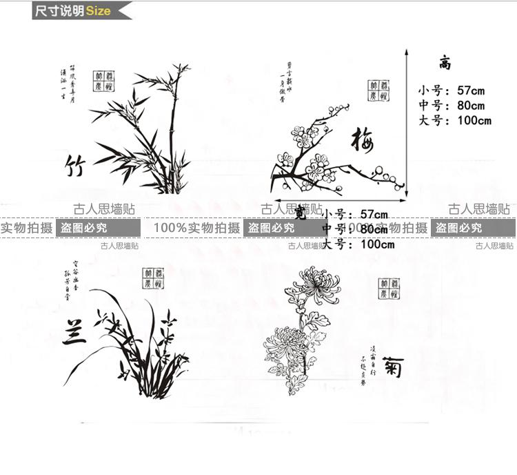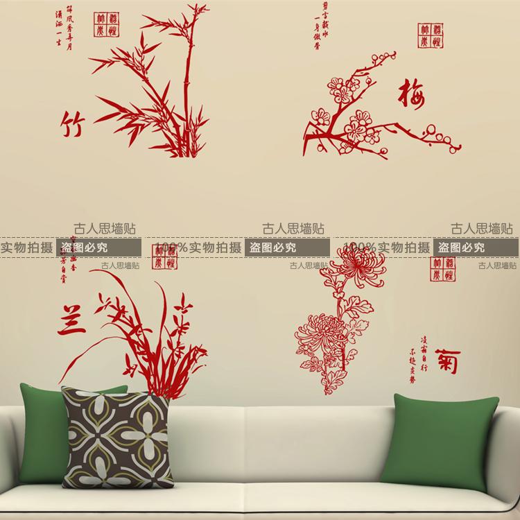 梅蘭竹菊墻貼紙 客廳辦公室書房中式墻貼紙貼畫 古典復古中國風貼1入