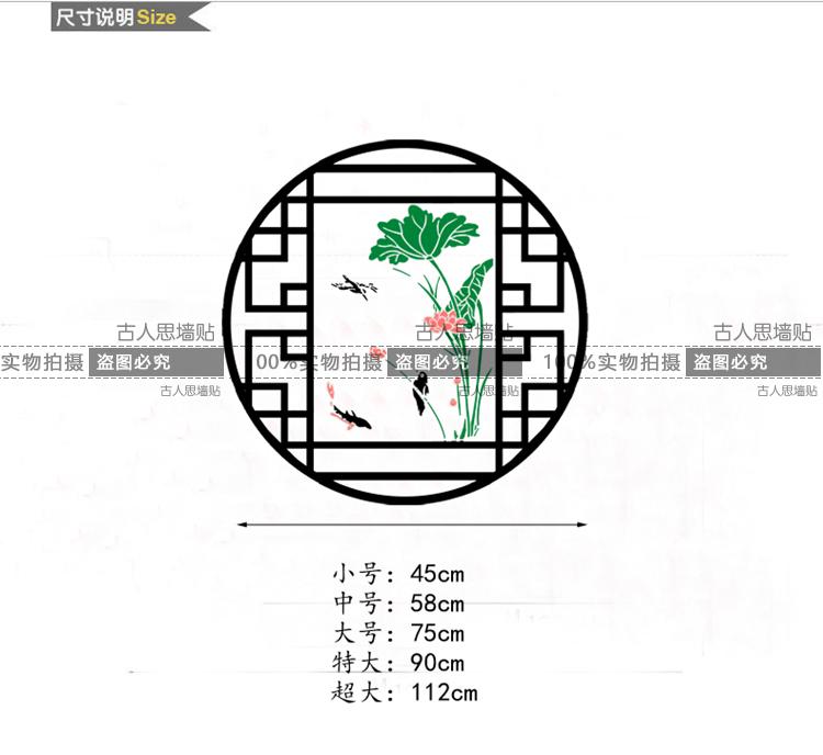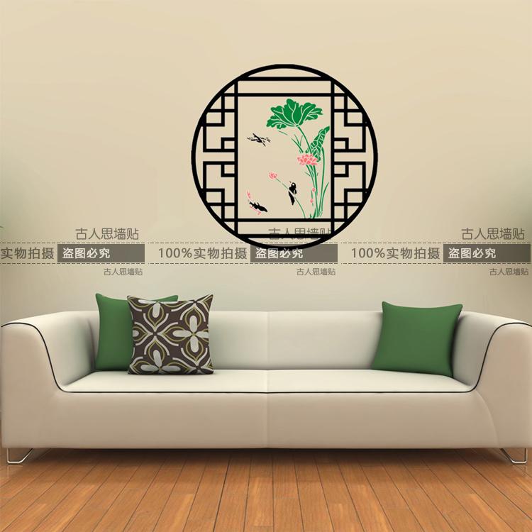 中式假窗裝墻貼紙 客廳書房沙發墻裝飾貼畫 幼兒園裝飾貼中國風1入