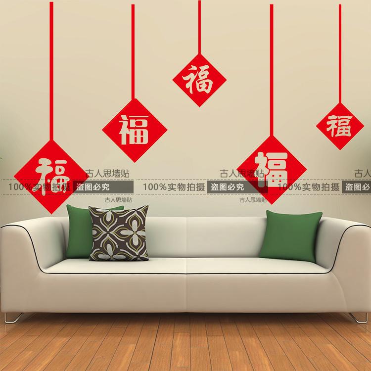 [2]吊福字新年裝飾墻貼紙 店鋪櫥窗玻璃貼墻貼紙窗花 2020鼠年春節貼1入