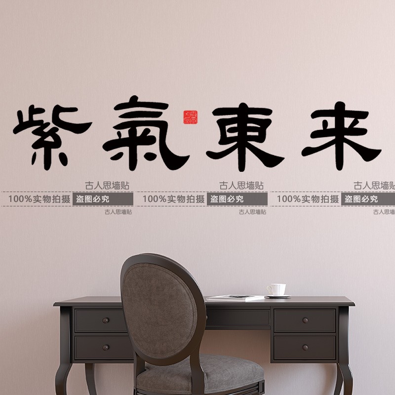 紫氣東來中國風書法文字墻貼紙 客廳書房古典裝飾中式墻貼毛筆字1入