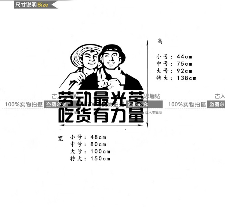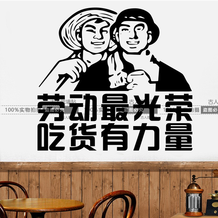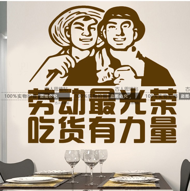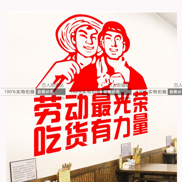 餐廳飯店墻貼學校食堂火鍋燒烤店玻璃櫥窗玻璃搞笑貼紙勞動光榮1入