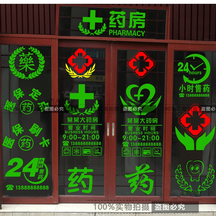 醫院藥店大藥房門診櫥窗玻璃墻貼紙 藥字 藥房柜臺標志貼提示貼1入