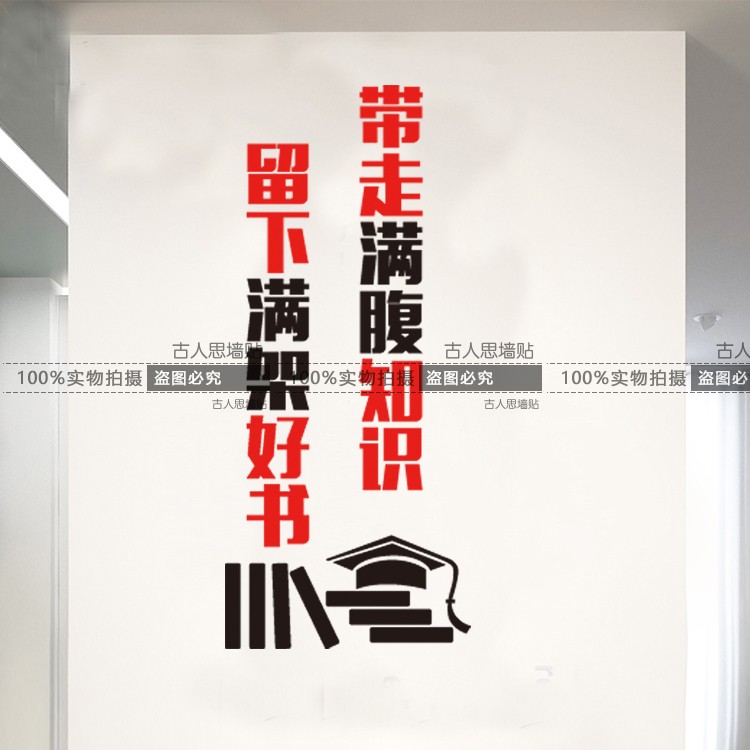 讀書勵志墻貼紙 書房圖書館圖書室學校圖書角裝飾標語墻貼畫1入