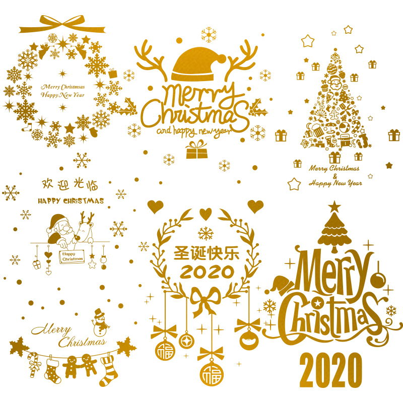 金色圣誕節裝飾墻貼畫創意2020新年春節店鋪布置櫥窗花玻璃門貼紙1入