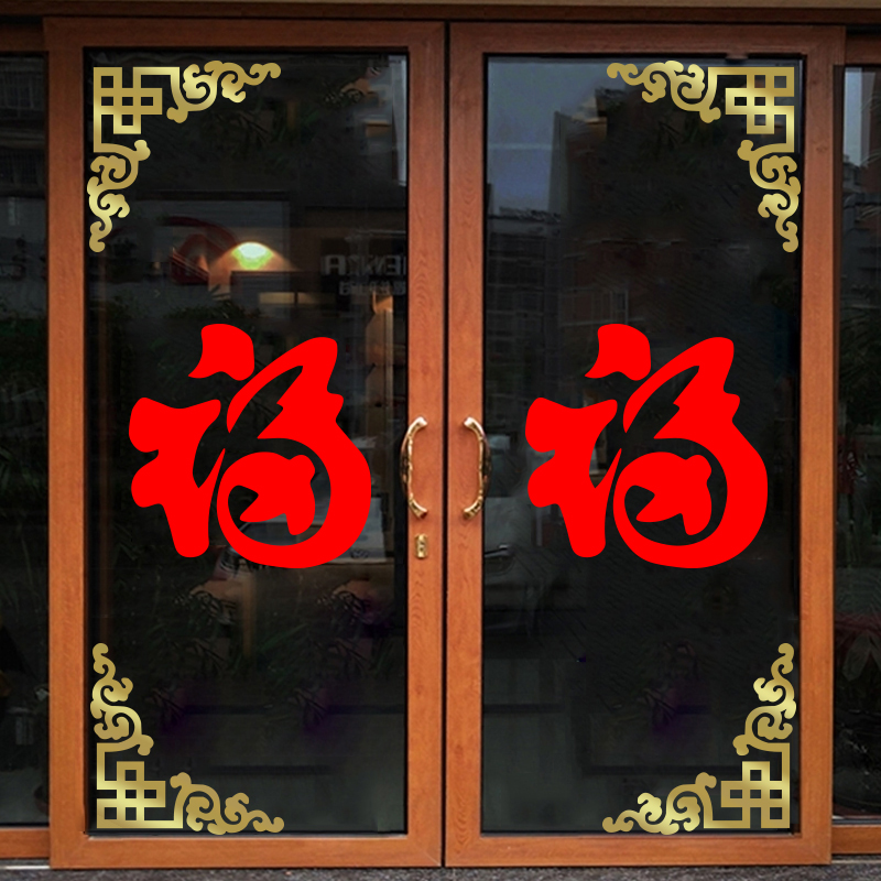 中國風櫥窗玻璃門貼紙中式火鍋店飯店餐廳客廳燈籠福字裝飾對角貼1入