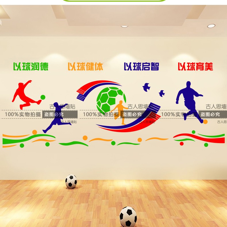 足球海報墻貼紙體育館運動器材室背景墻文字標語裝飾布置貼紙畫1入