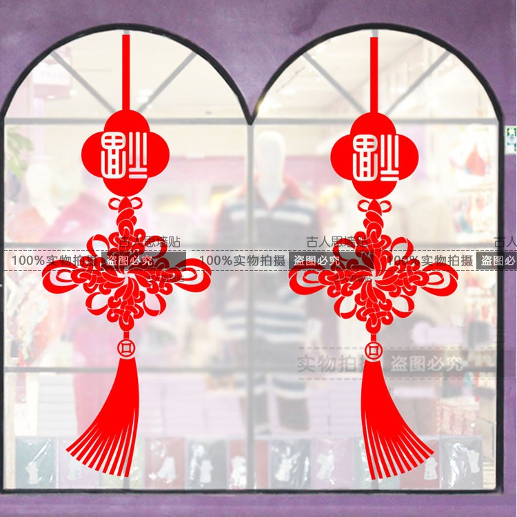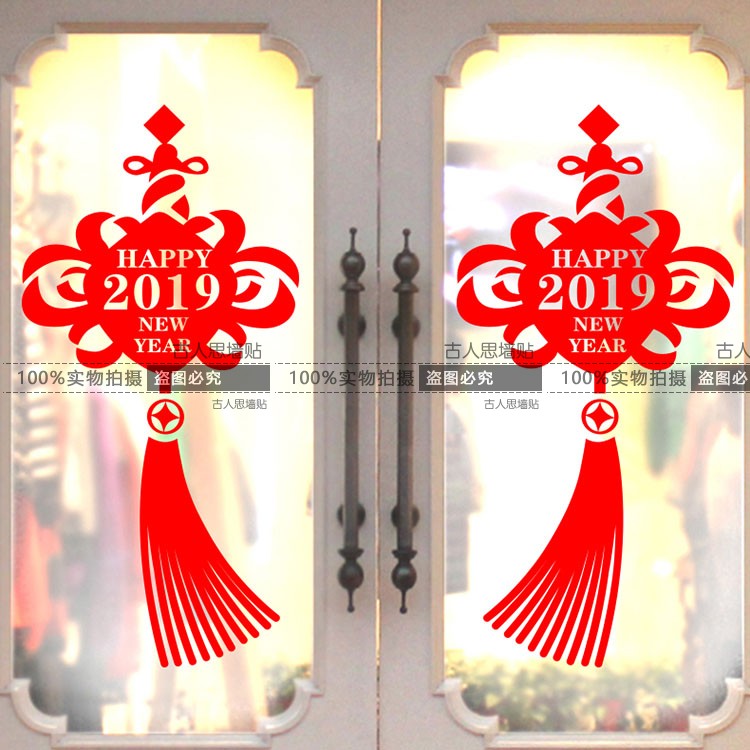 2020元旦喜慶新年快樂裝飾墻貼紙玻璃貼 福字中國結櫥窗玻璃貼畫1入