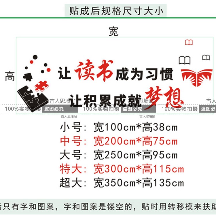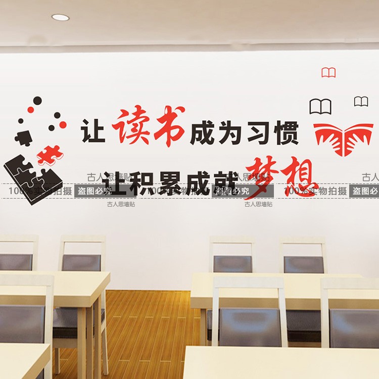 讀書成為習慣勵志激勵墻貼紙 圖書館班級教室標語裝飾貼紙閱覽室1入