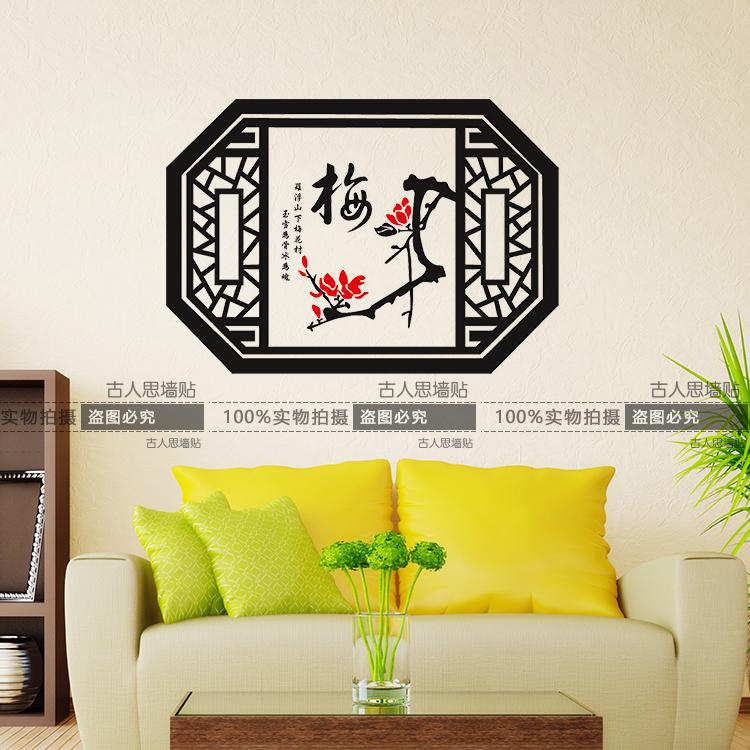 中式古典假窗墻貼紙 梅花書房客廳電視沙發墻背景裝飾貼中國風貼1入