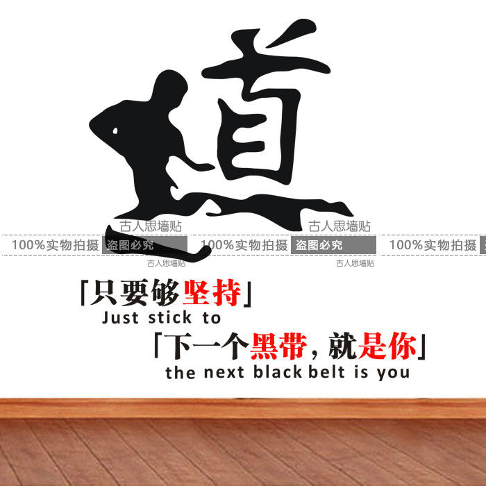 道字墻貼紙跆拳道人物勵志墻貼 武術道館跆拳道館教室墻貼紙貼畫1入