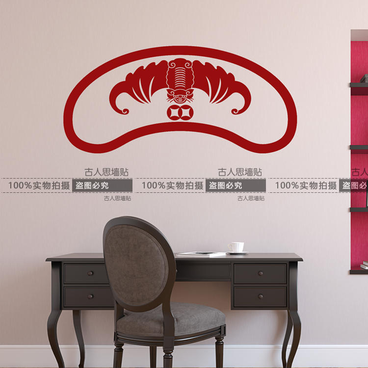 蝙蝠福吉祥如意裝飾墻貼紙 中式古典寓意吉祥墻貼畫 創意復古帖1入